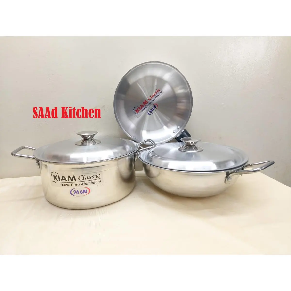 The Kiam Classic Gift Box 5 in 1 typically includes a combination of essential cooking vessels and lids. The main material is a heavy-gauge aluminum body, known for durability and even heat distribution.
