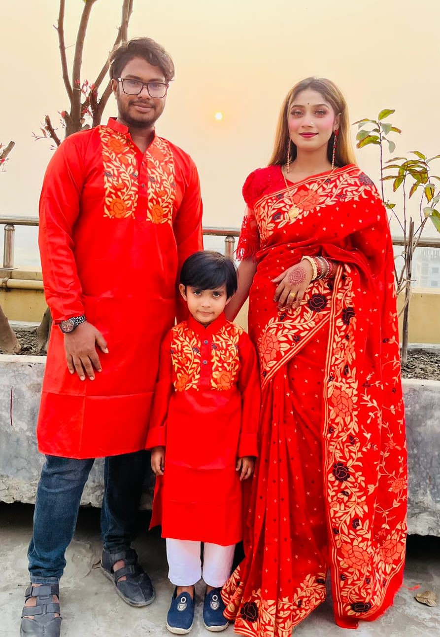 Product details of Half silk saree dupaiyan Panjabi couple Dress,আরামদায়ক, কাপড়ের মান কাজ খুবই উন্নত এবং আকর্ষনীয়