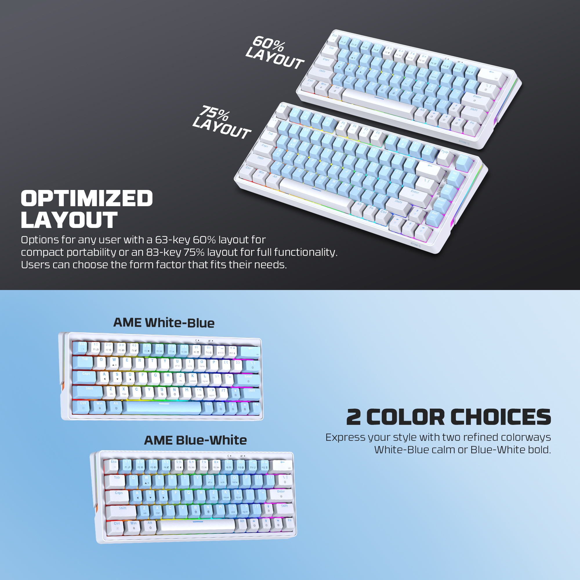 FANTECH ATOM X63 MK611 MECHANICAL GAMING KEYBOARD AME EDITION WHITE & BLUE