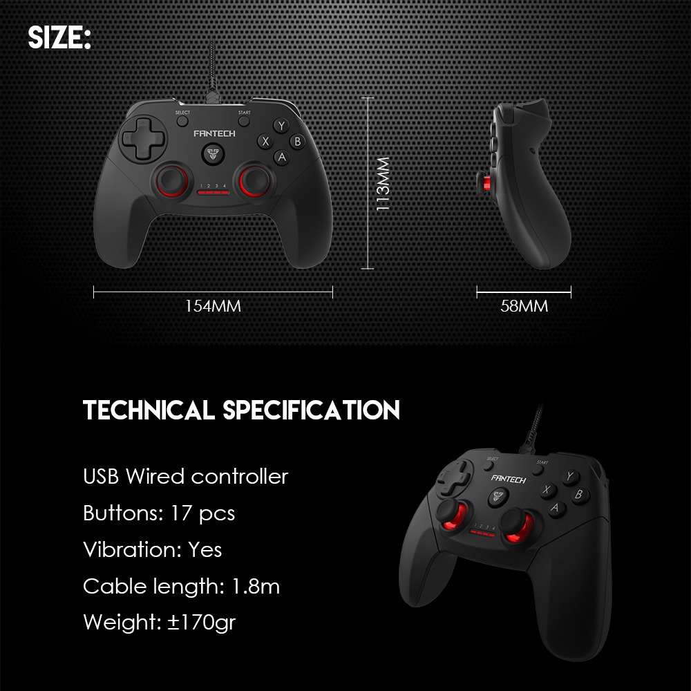 Fantech GP12 Revolver Gaming Controller comes with a USB Wired interface. Its ergonomic shape & weight are favored by esports athletes, It is comfortable for hours of gaming. The vibration feedback gives you a riveting gaming experience. It has a 1.8m long cable. This gaming controller comes with 17pcs Buttons. It is compatible with PC/PS3. The new Fantech GP12 Revolver Gaming Controller has a 01-year warranty.