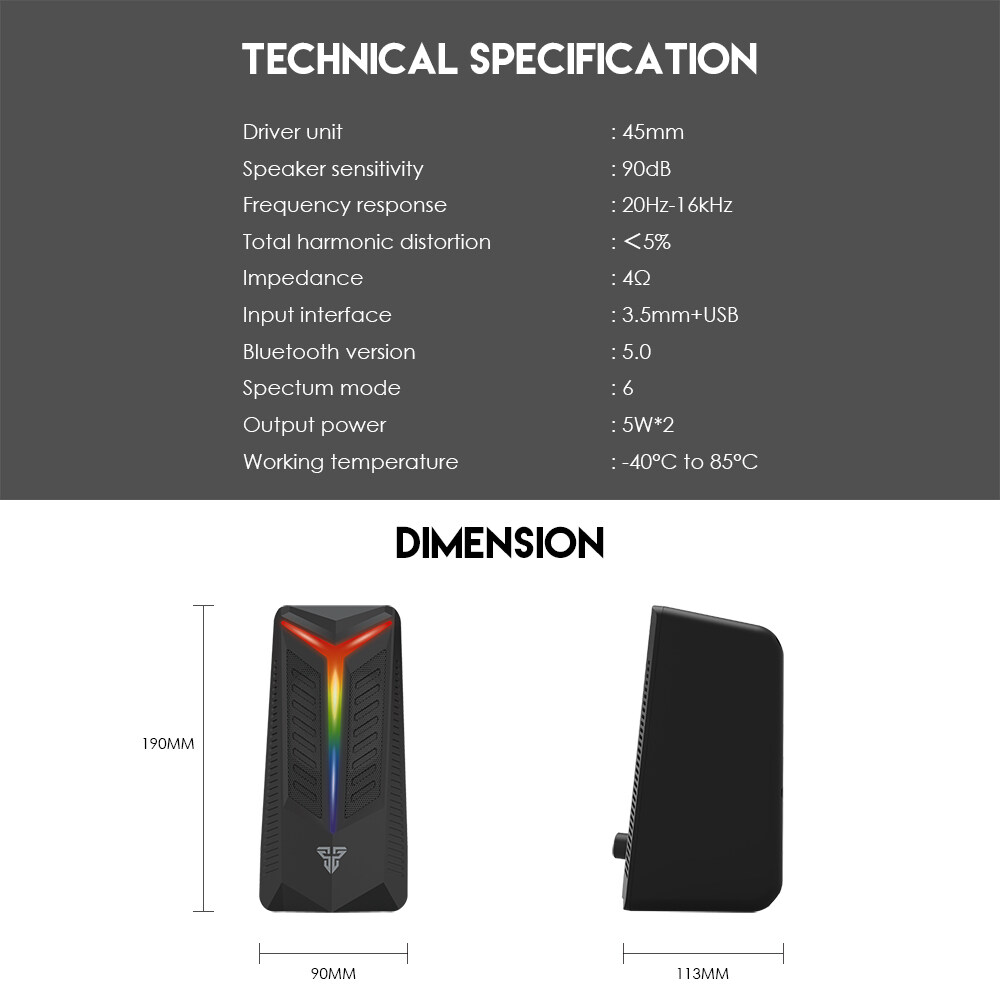 FANTECH GS301 TRIFCTA Wireless BT 5.0 Speakers Dual Mode 3.5mm Wired stereo Surround Music RGB Speakers for PC Laptop Phone TV