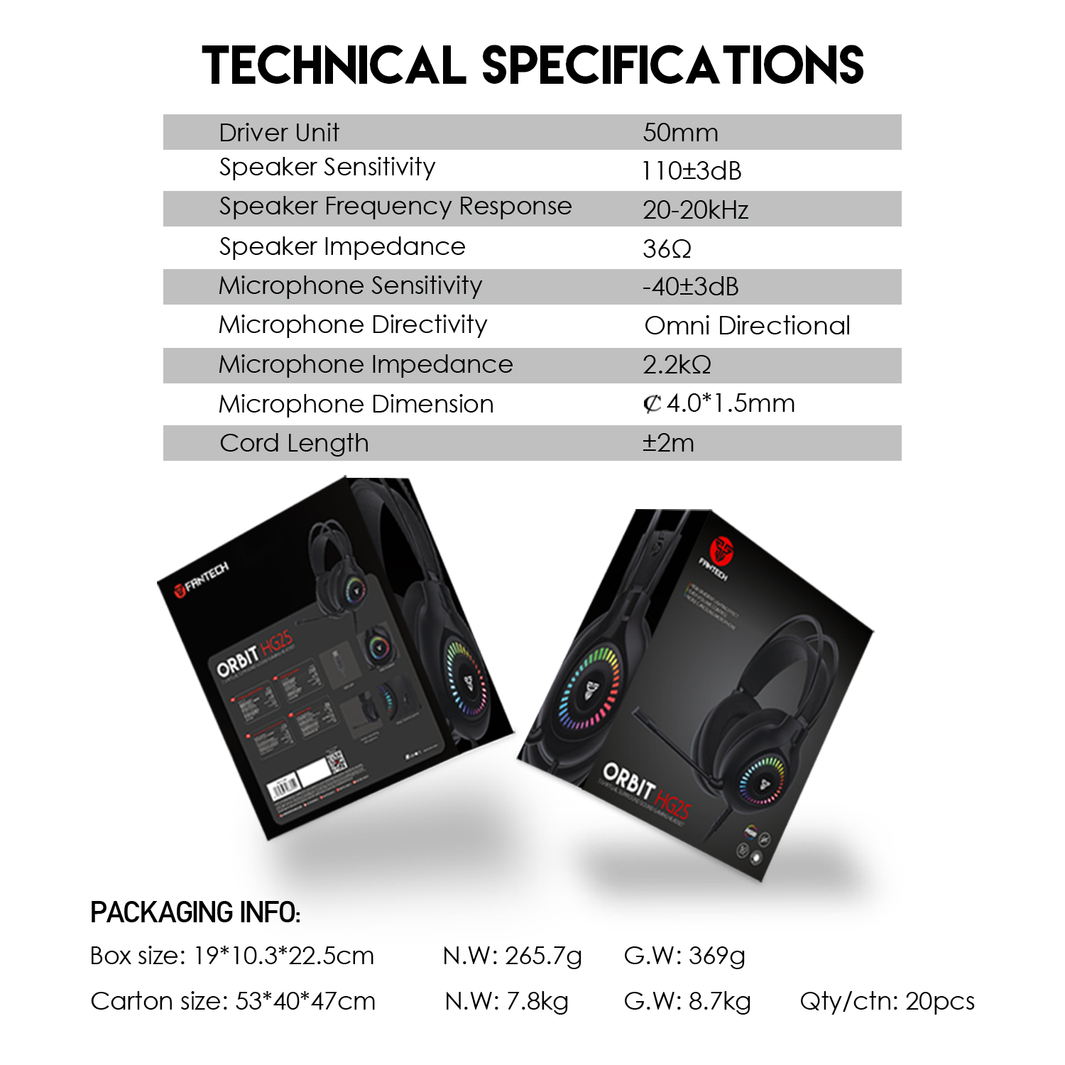 FANTECH HG25 ORBIT 7.1 VIRTUAL SURROUND SOUND GAMING HEADSET RGB GRADIENT LIGHTING EFFECT NOISE CANCELLING MICROPHONE Nylon Braided Cable USB Connectivity.