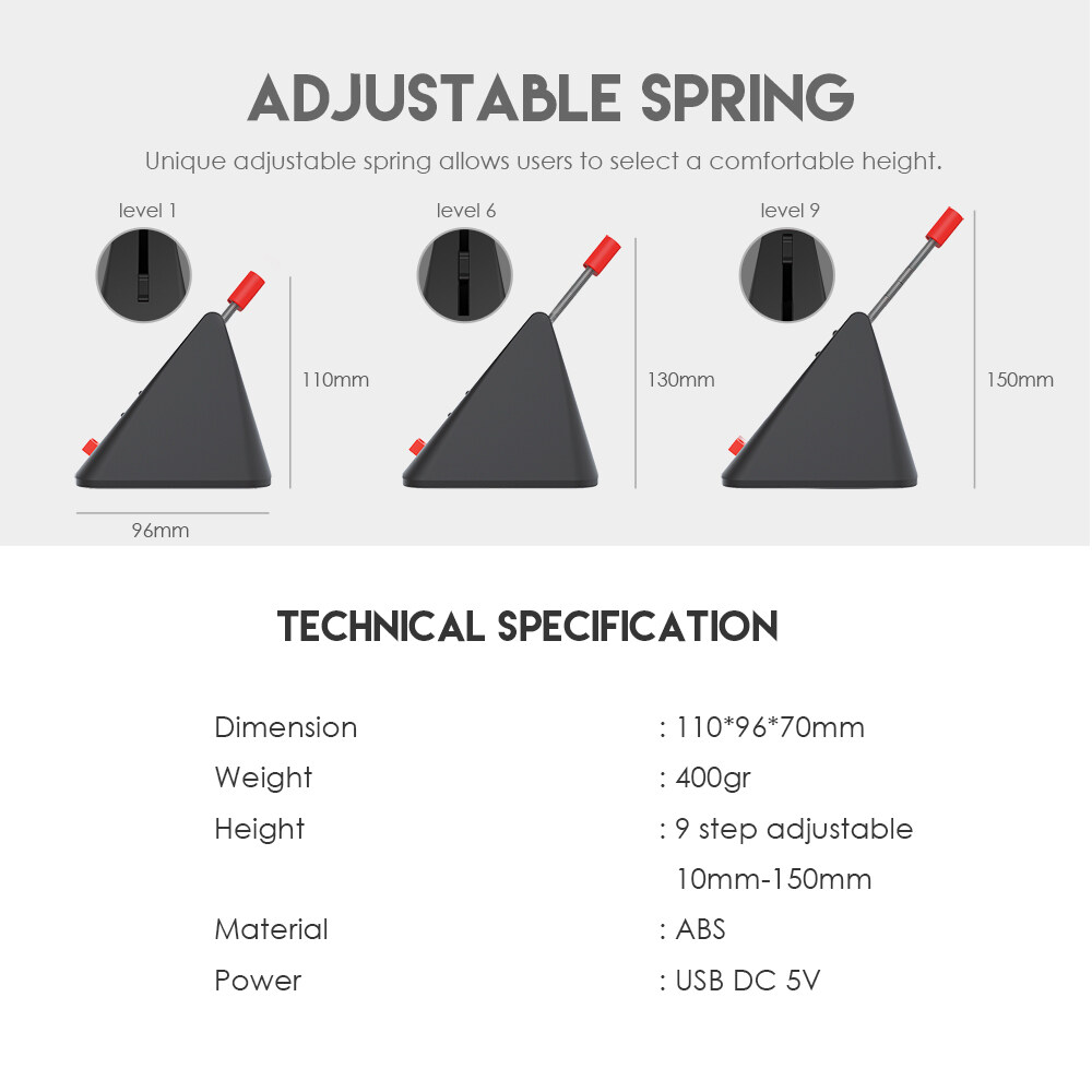 The Fantech PRISMA MB01 Mouse Bungee is a cord-free design. While moving the mouse, this prevents cable snag and entanglement. This is a solid gaming design with a super-steady base and non-slip rubber feet. It is equipped with a universal rubber clip. This mouse bungee works with all cords. For best performance, its super-stable foundation weighs 400gr and has non-slip rubber feet. Users may choose a comfortable height thanks to a unique adjustable spring. The Fantech PRISMA MB01 Mouse Bungee has a 01-year warranty.