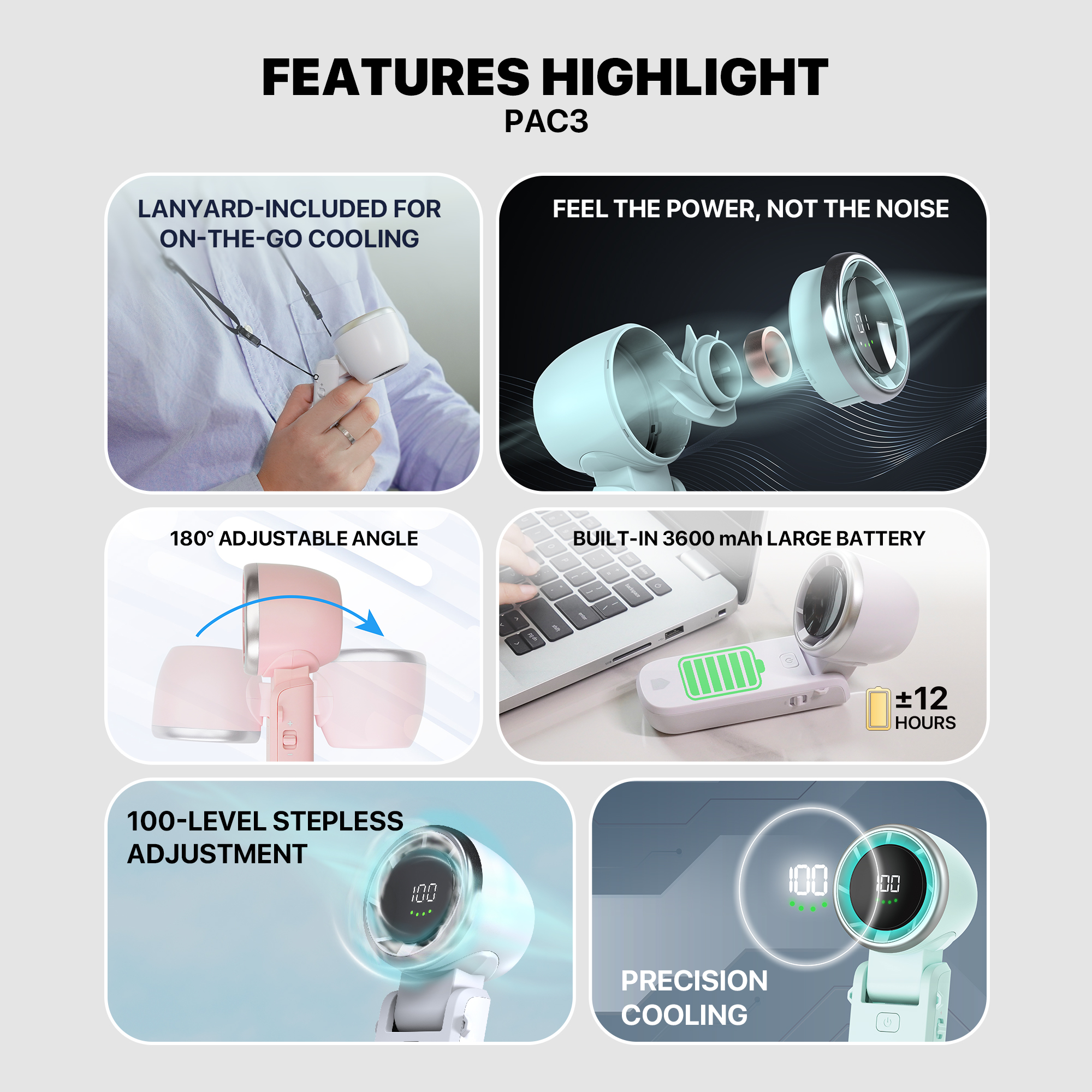 Fantech Portable Cooler PAC3 Mini Fan Handheld Fan Rechargeable & Adjustable Speed 13000RPM