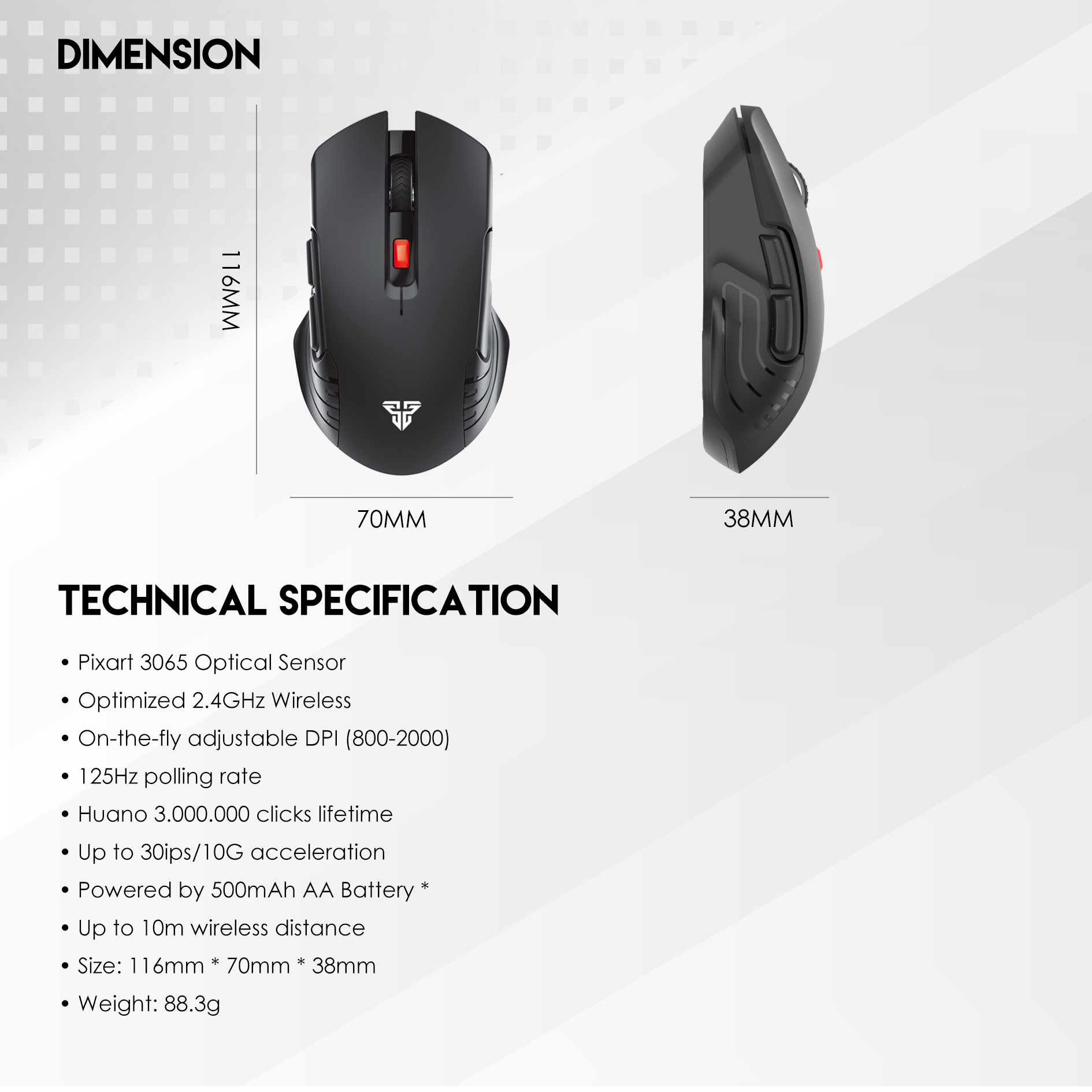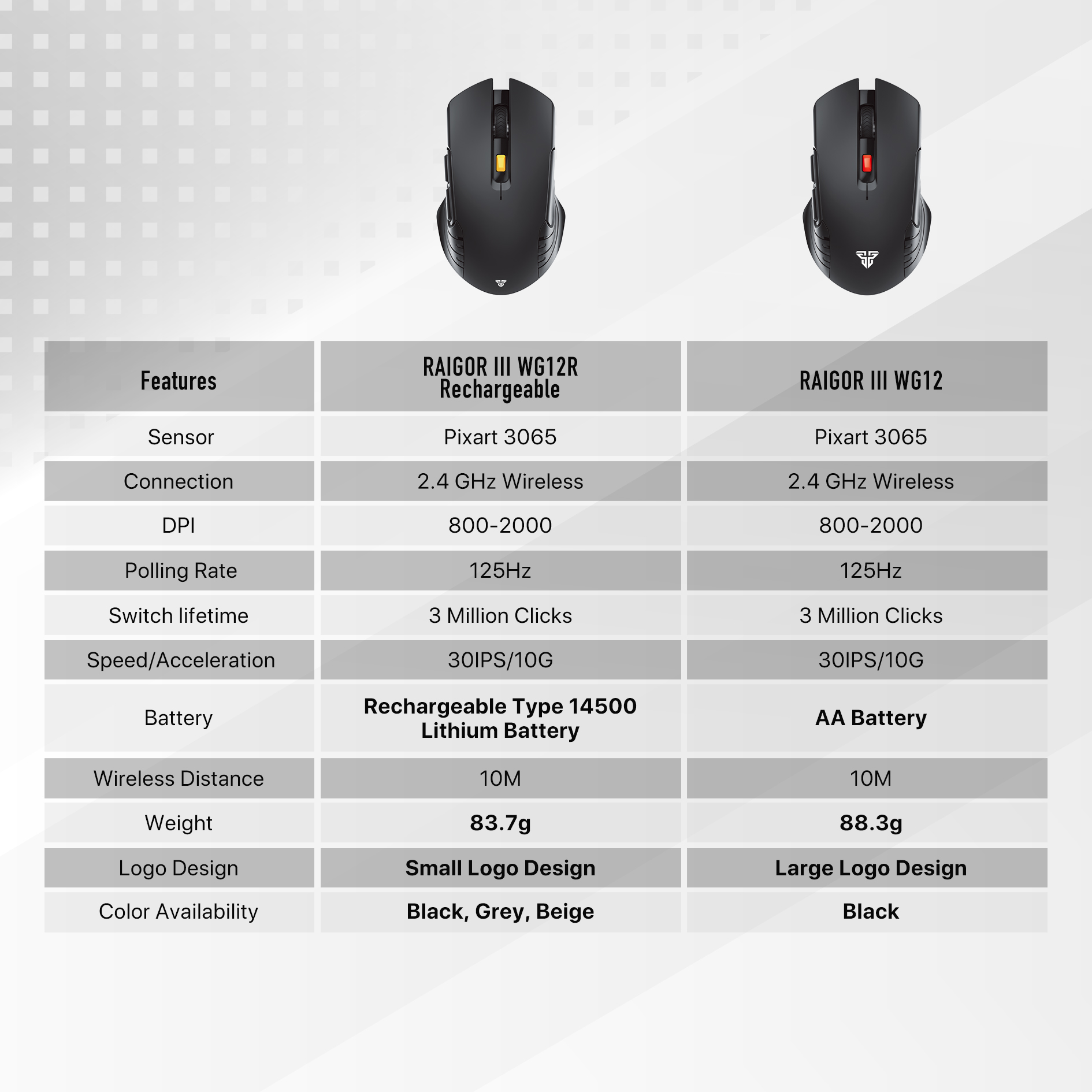 FANTECH RAIGOR III WG12 Stable 2.4Ghz Connection Wireless Mouse 2000 DPI Pixart Sensor Ambidextrous Design Portable Mice For Laptop PC Computer Gaming Gamer