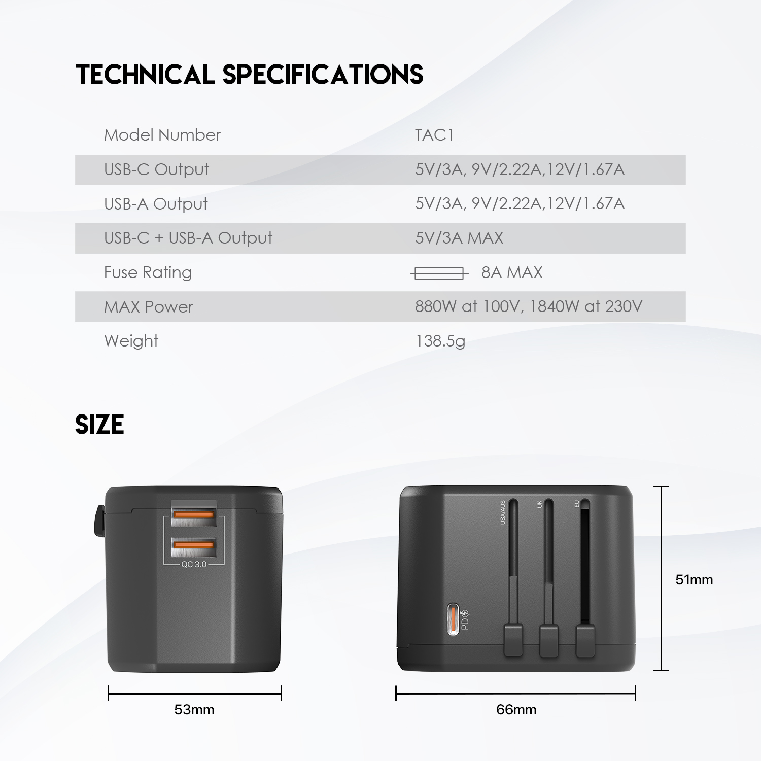 ✓ USA Compatibility: Explore the vast landscapes of the USA, from the iconic skylines of New York City to the sun-soaked beaches of California. TAC1 keeps you charged no matter where your American journey takes you.