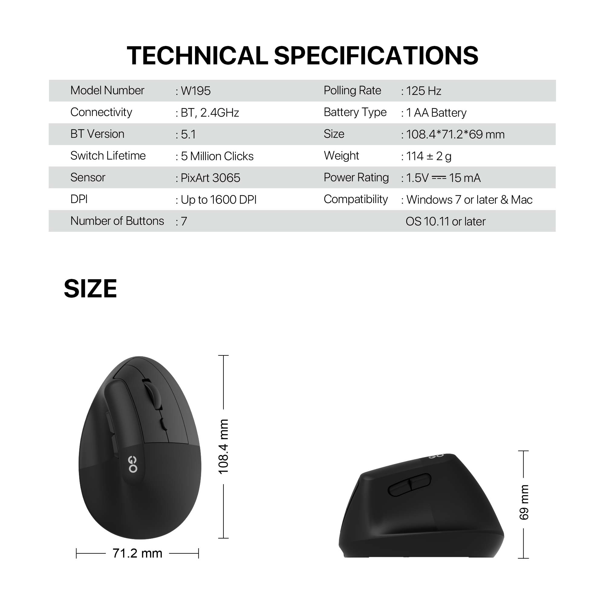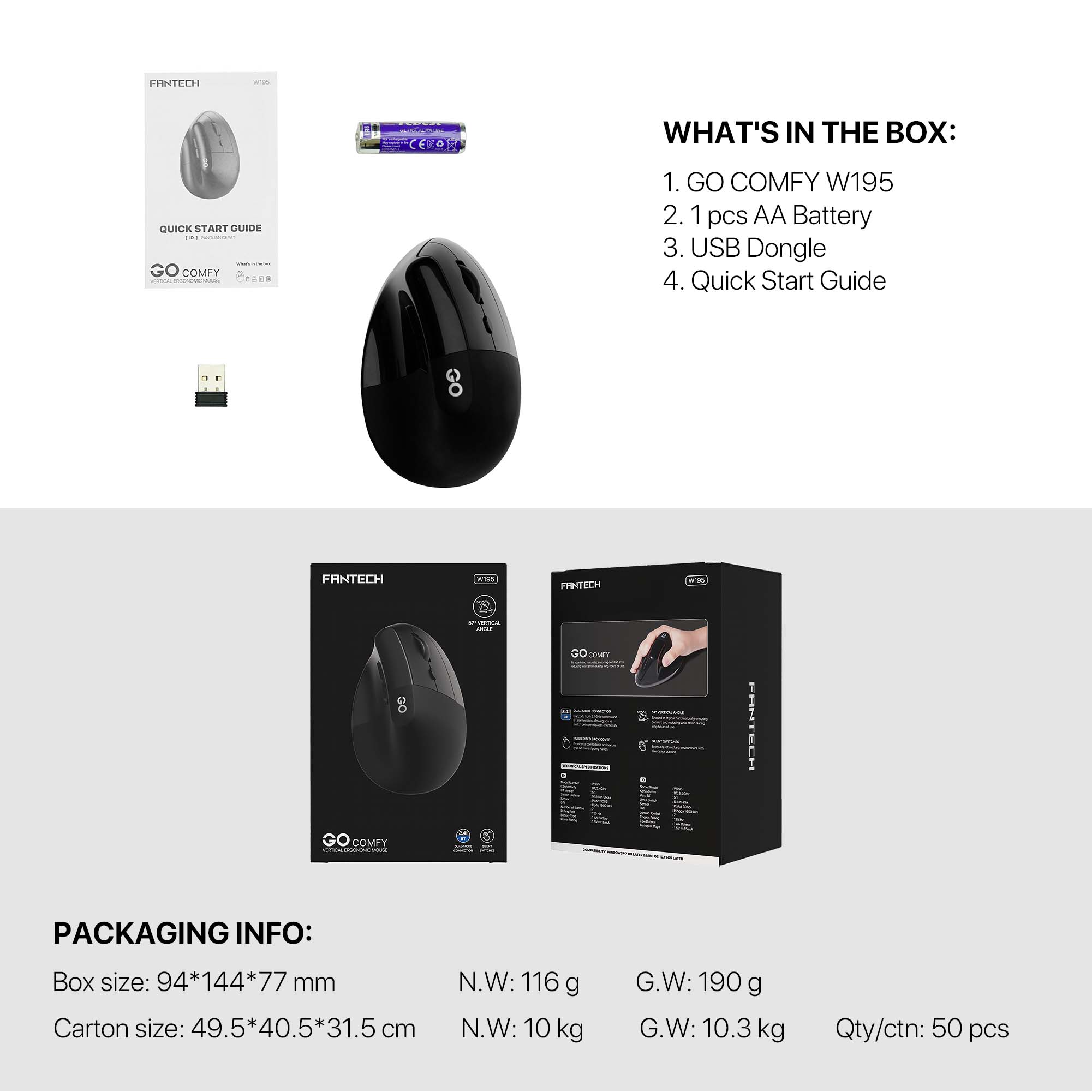 FANTECH W195 Go Comfy Mouse Vertical Ergonomic 2.4GHz Wireless and 5.1 Bluetooth Compact Mouse