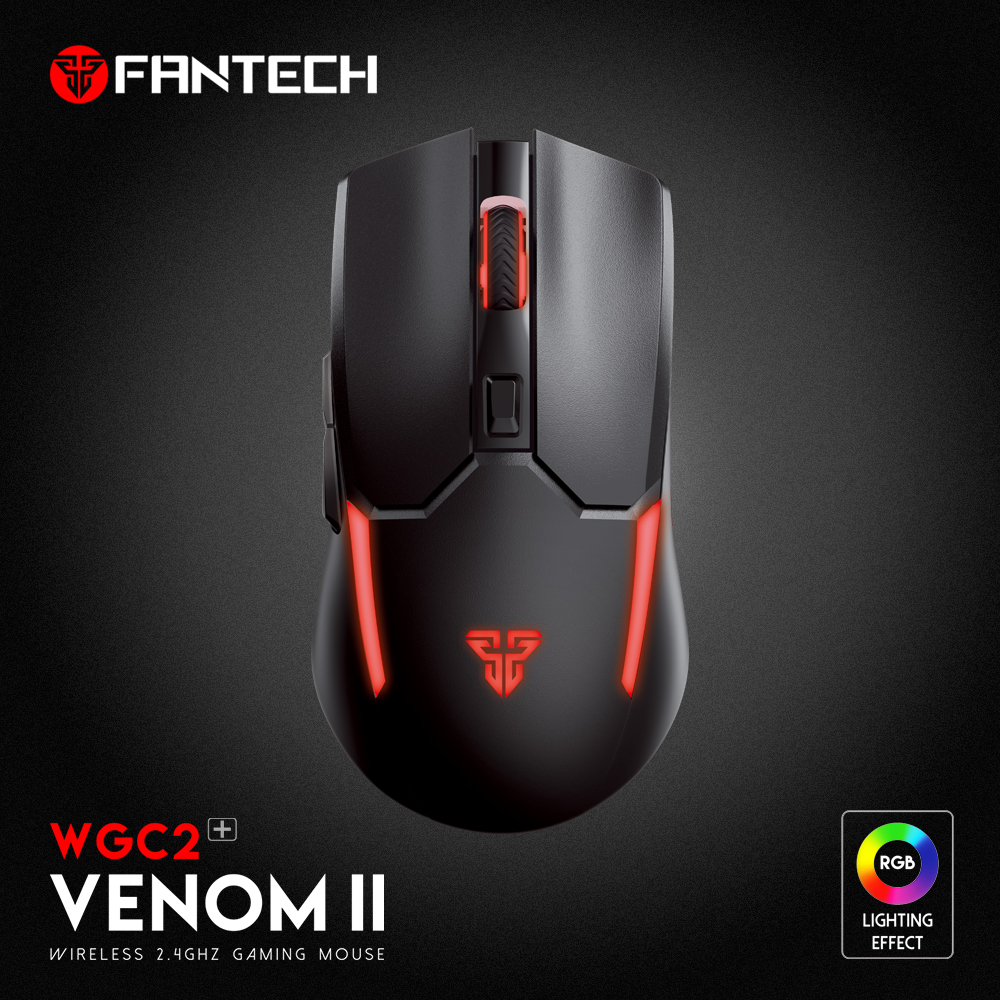 The Fantech VENOM II WGC2 Black Mouse comes with a PixArt 3212 Gaming Sensor that guarantees that even the slightest motions from this wireless mouse are reliably recorded. This gaming mouse has an ambidextrous shape. You may have a long-lasting gaming experience with an excellent battery saver option. As it is equipped with an intelligent power saver function, allowing for a long-lasting experience when gaming. With this mouse's RGB LEDs, which can be adjusted to 16.8 million colors, you can easily customize your gaming experience. The Fantech WGC2 is designed to be energy efficient, allowing you to play for up to 40 hours on a single charge, ensuring that your gaming is never interrupted. Its WGC2 has a dedicated DPI button, allowing you to change DPI on the fly without losing focus on your games. WGC2 skates are made of real PTFE for smooth movement. The Fantech VENOM II WGC2 Black Mouse comes with a 01-year warranty.