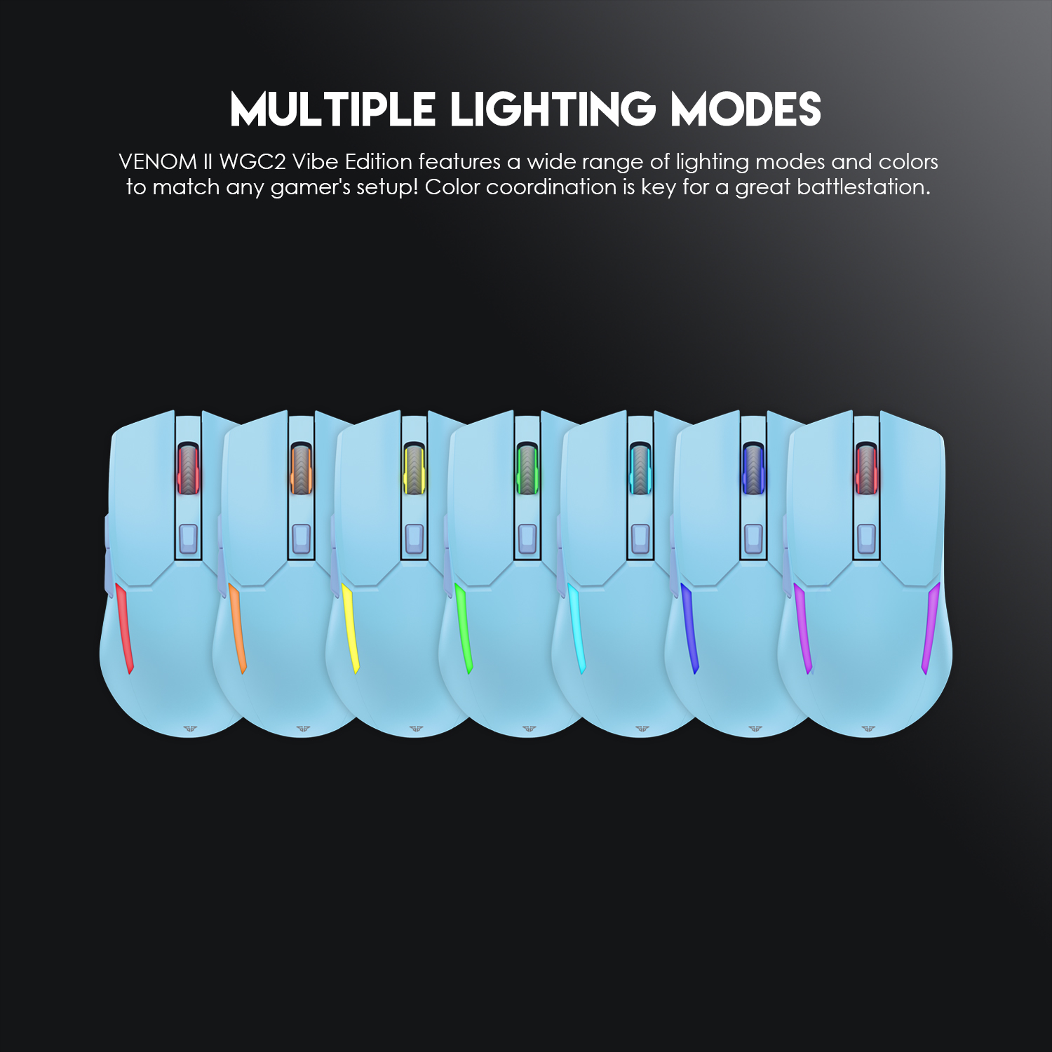 FANTECH WGC2 VENOM II VIBE 2.4G Wireless Gaming Mouse Pixart 3212 2400DPI RGB Rechargeable Mouse Ergonomic Mice Gaming Gammer For Laptop PC Blue