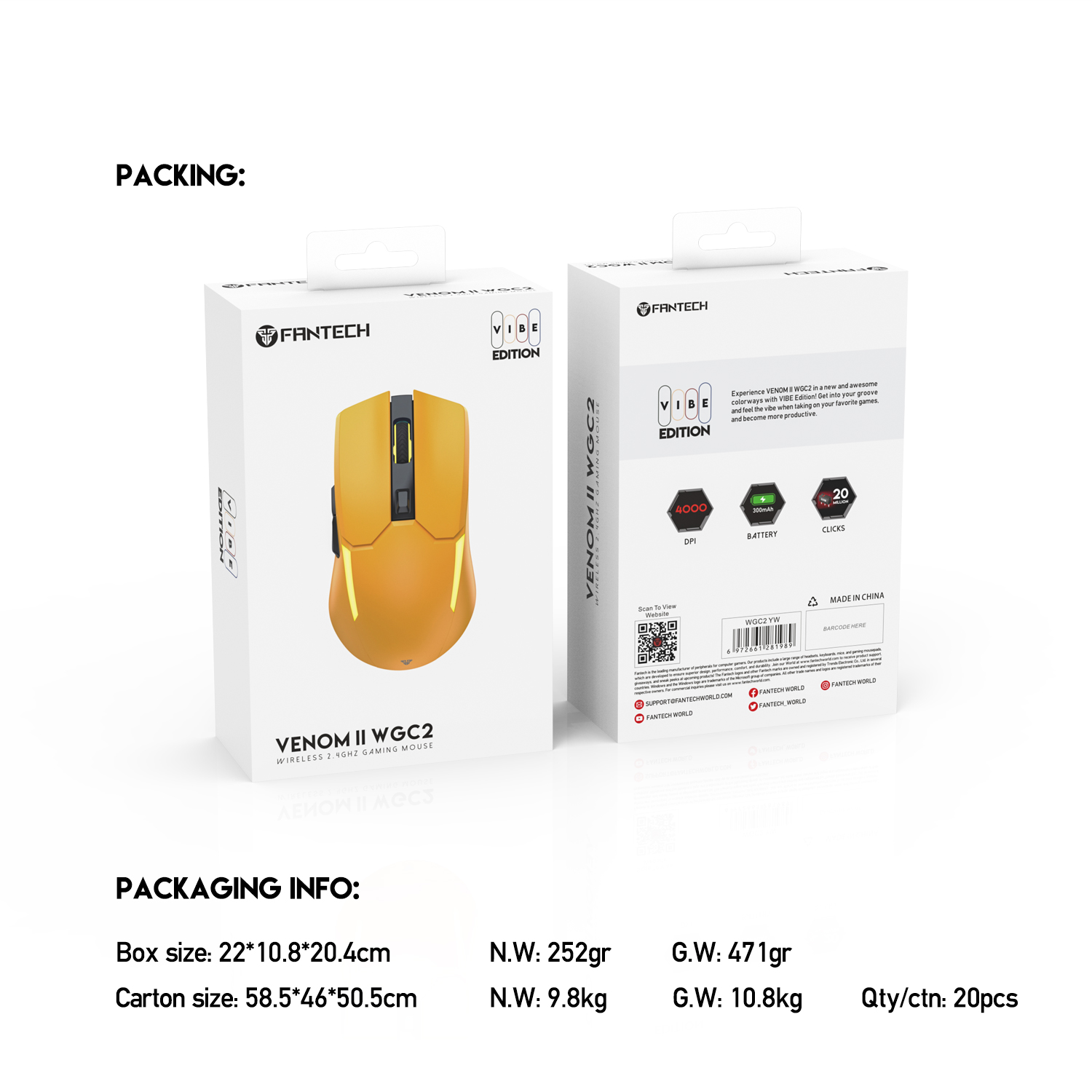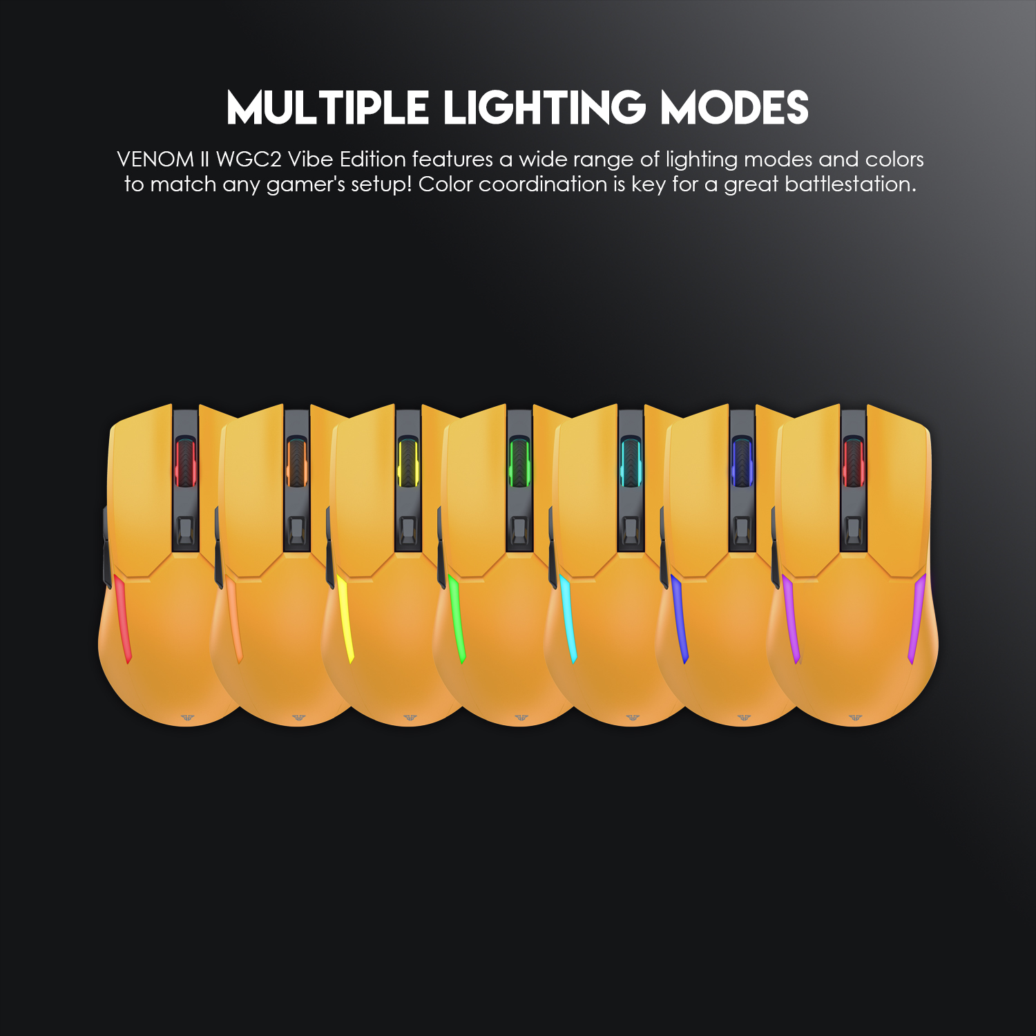 FANTECH WGC2 VENOM II VIBE 2.4G Wireless Gaming Mouse Pixart 3212 2400DPI RGB Rechargeable Mouse Ergonomic Mice Gaming Gammer For Laptop PC Yellow