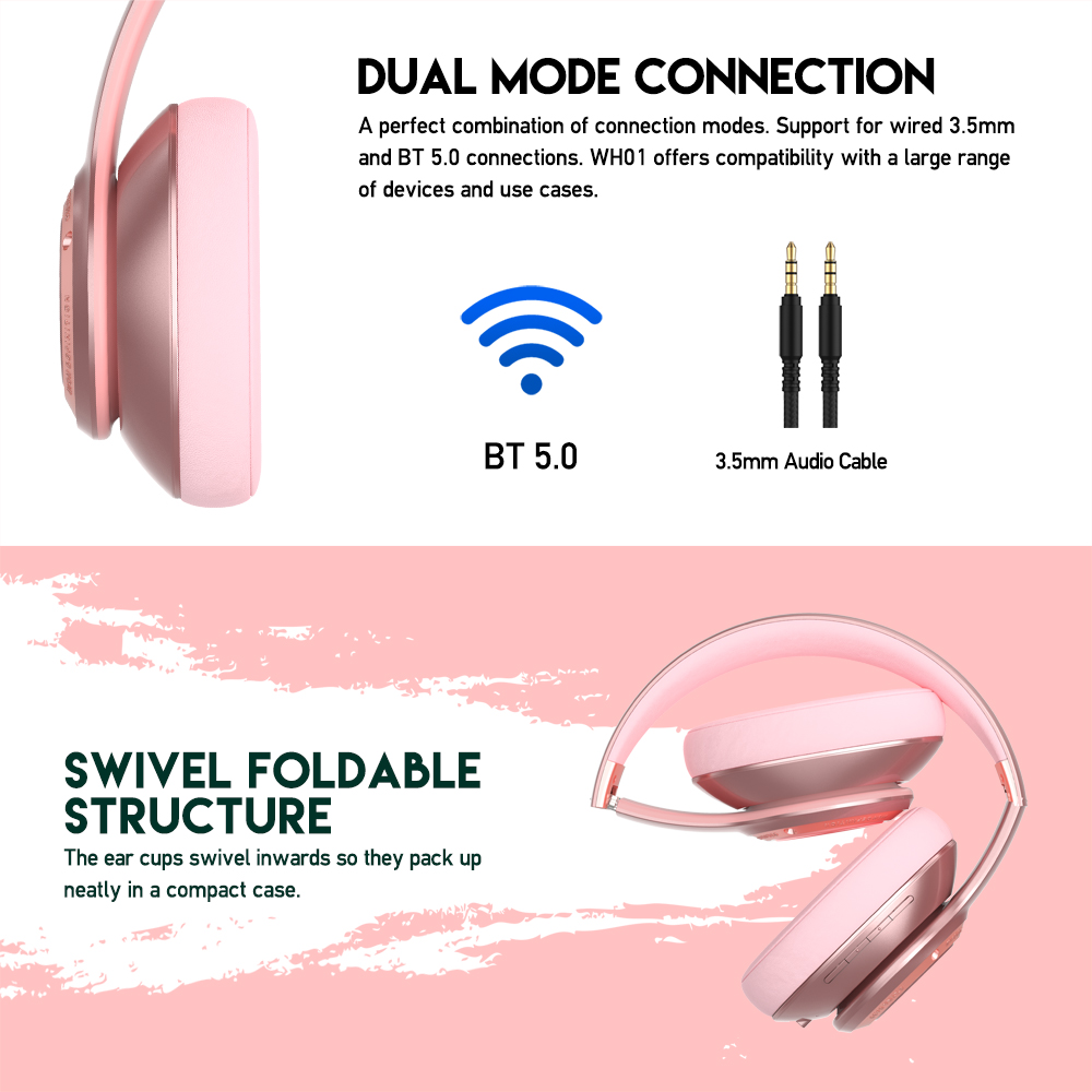 - Dual Mode Connection: A perfect combination of connection modes. Support for wired 3.5mm and BT 5.0 connections. WH01 offers compatibility with a large range of devices and use cases.