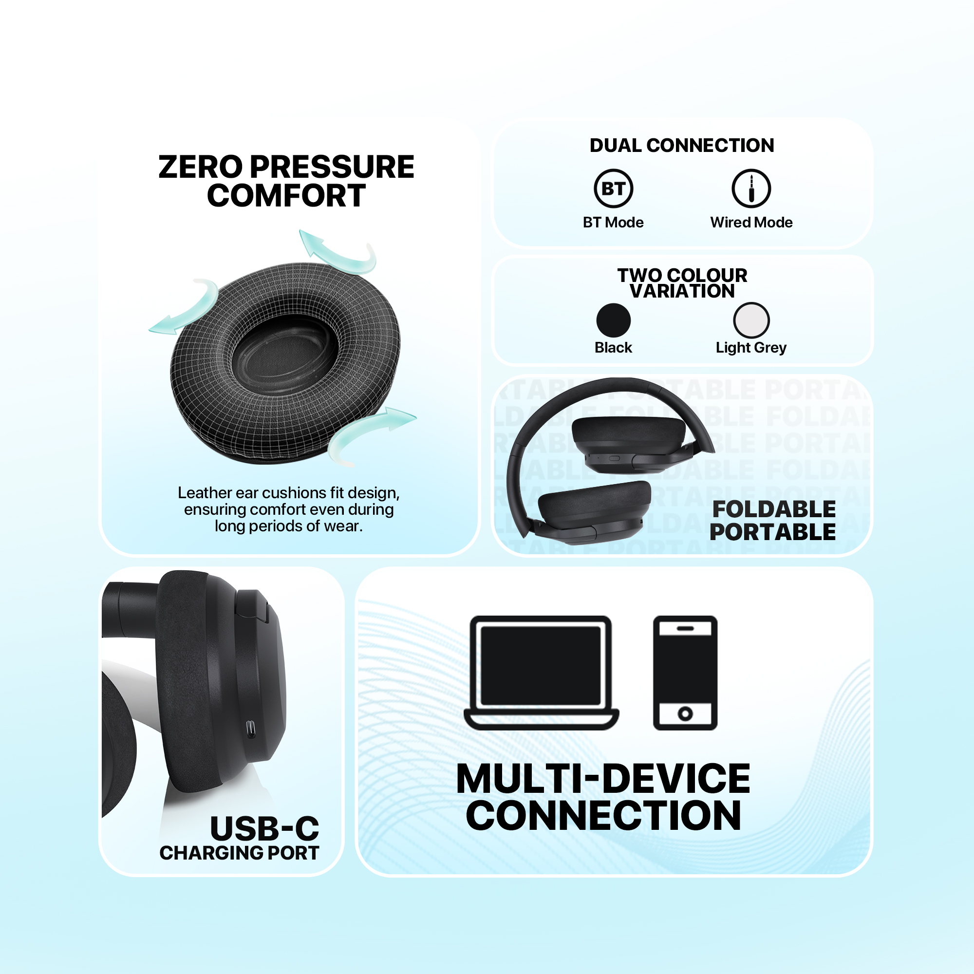 With a 500mAh battery, this headset offers an impressive 35 hours of playback time and supports USB-C fast charging, requiring approximately 2 hours for a full charge. Weighing only 231g, it remains comfortable even during prolonged usage. Whether for work, travel, or entertainment, the FANTECH WH05A GO VIBE ANC Wireless Headset is a perfect companion for an uninterrupted and high-quality audio experience.