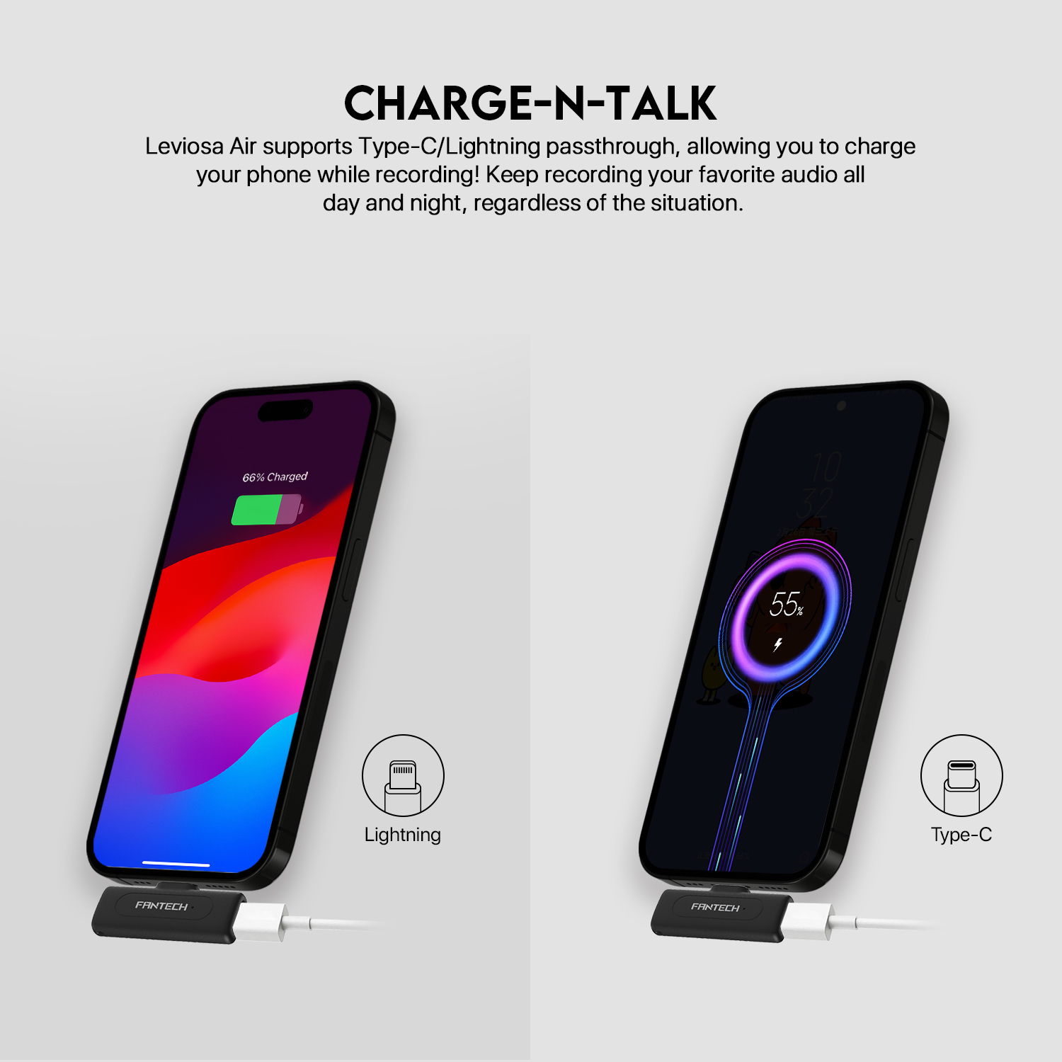 FANTECH WMV11 & WMV21 Leviosa Air Wireless Lapel Lavalier Microphone For Live Broadcast And Streaming With Noise Reduction Type-c & Lightning Single And Duel