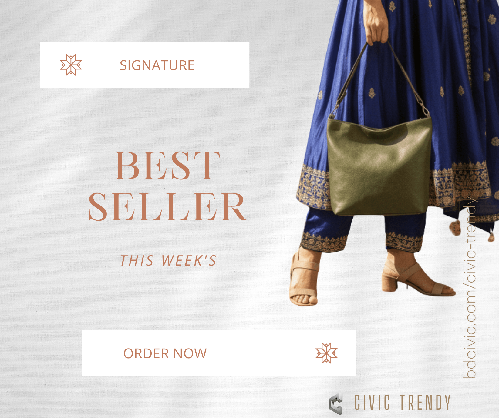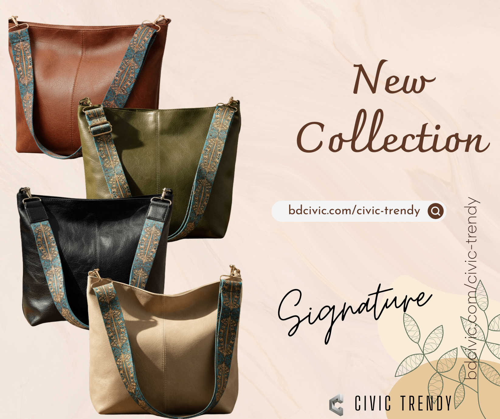 The bag is available in several colors, including brown, black, milky white, and green.