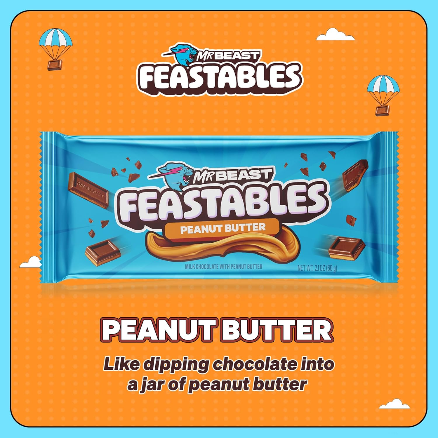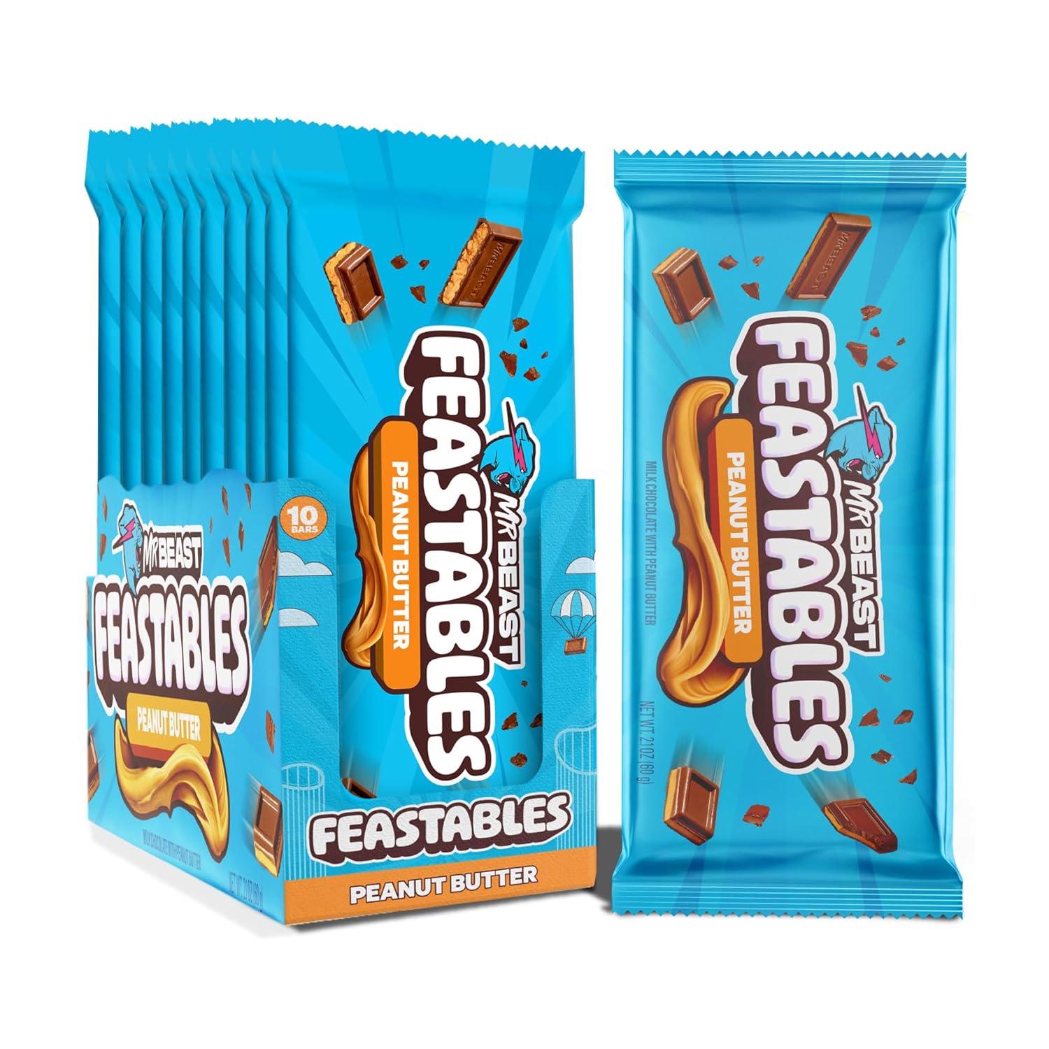 - Feastables Mr Beast Peanut Butter Chocolate Bar 60g, Made in USA