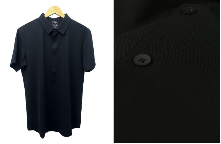 The micro-mesh textured fabric improves airflow and provides superior ventilation, making it ideal for warm weather and active lifestyles. The structured collar and button placket give the shirt a polished appearance while maintaining sporty functionality.