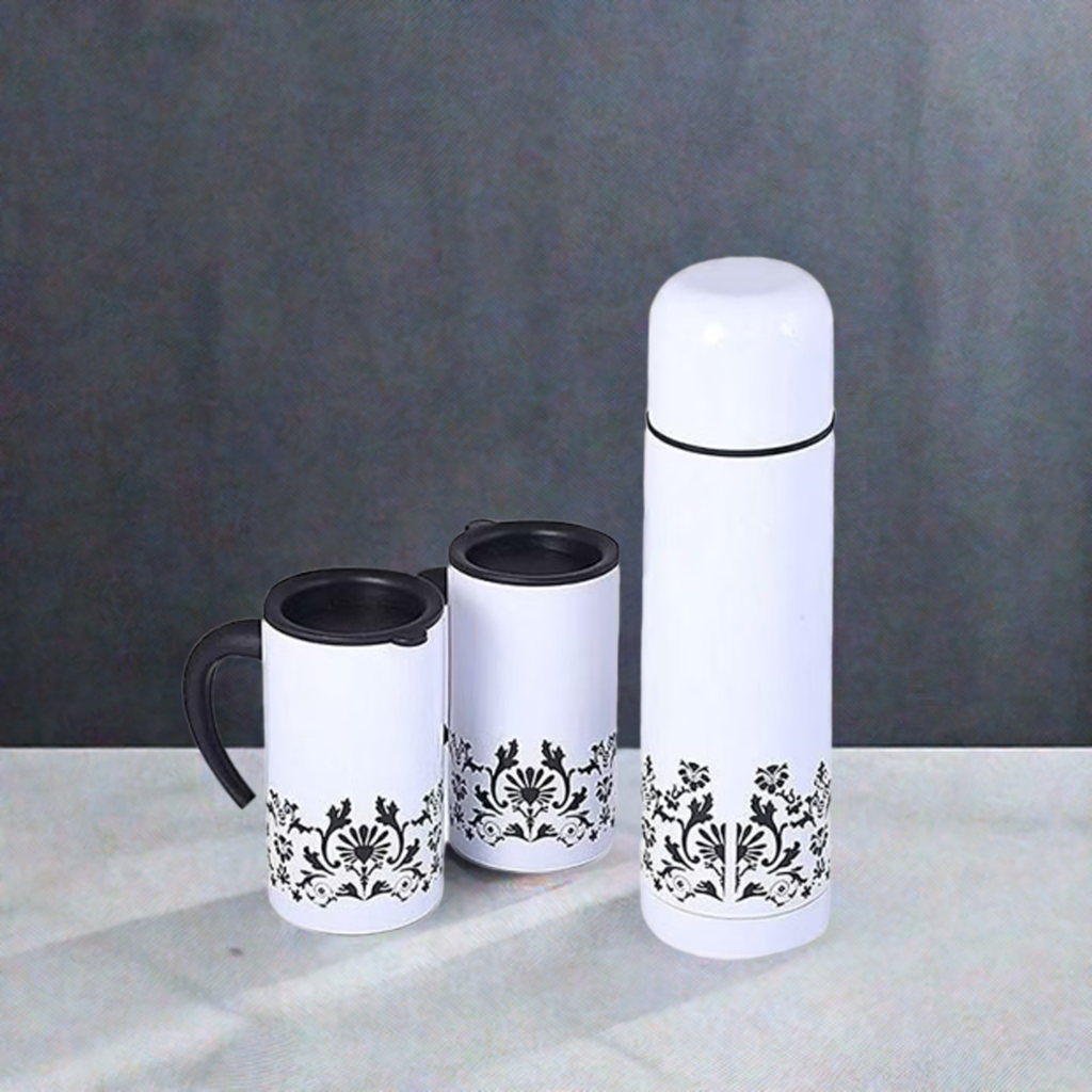 It is made by stainless steel vacuum flask, 2 X Insulated mugs double walled with lids. 2.This flask set is excellent value for money and makes a great gift, suitable for all. Virtually unbreakable stainless steel construction, the flask has been manufactured with a wider mouth for storing all foods, ice cubes and all kinds of beverages, hot or cold. Each mug comes with its own spill-resistant lids, perfect for keeping your beverages hot or colder for longer. A stylish set benefiting from a slim line vacuum insulated design, highly effective against temperature change. Manufactured from light weight stainless steel, this set is an ideal accompaniment for all outdoor events, this vacuum insulated flask pack and travel mugs set, contains everything required for that deserving coffee break. The flask will keep your drinks hot for up to 12 hours and cold up to 24 hours. Manufactured with quality and cost in mind, this flask pack represents outstanding value for money. A quality flask pack and travel mug set to suit all occasions.
