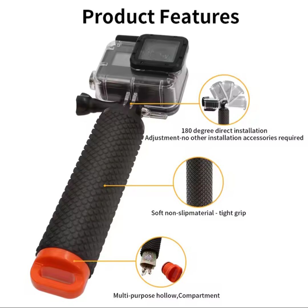 No More Worries about Losing your Camera: Waterproof Floating Grip keeps your Go Pro float better than ever. Bright orange end will be spotted easily in water without any worries to lose a camera.