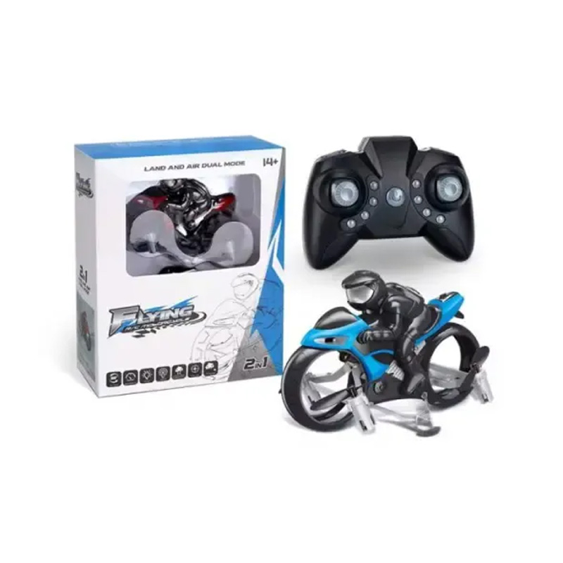 - Flying Motorcycle for Land and Air Dual-mode Drone Car ModelProduct NameBest Seller Flying Motorcycle for Land and Air Dual-mode Drone Car ModelItem NO.SL-E1205MaterialPlastic+metal ComponentsPackageColor boxPacking size17.5*7.5*24.5cmCarton size59.5*22*46cm 24PCS/CTNWeight0.215kg/pcsAge6+years