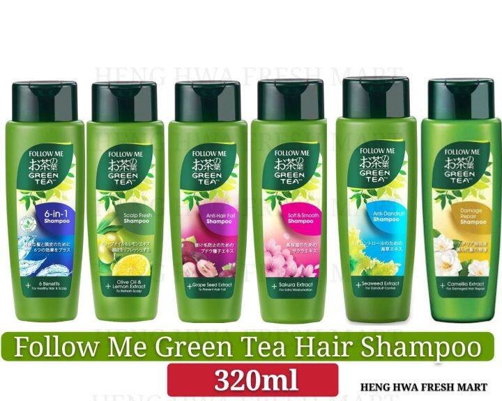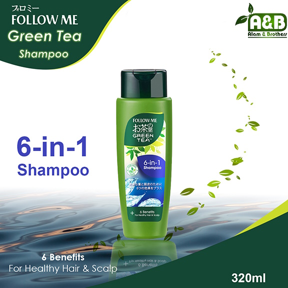 Buy Follow Me green tea 6 in 1 shampoo 320ml online from Alam and brothers Feel refreshed with green tea 6 in 1 shampoo that gives you a cooling sensation with a fresh fragrance infused with green tea extract, Trehalose, ZPT and Climbazole giving you 6 benefits.