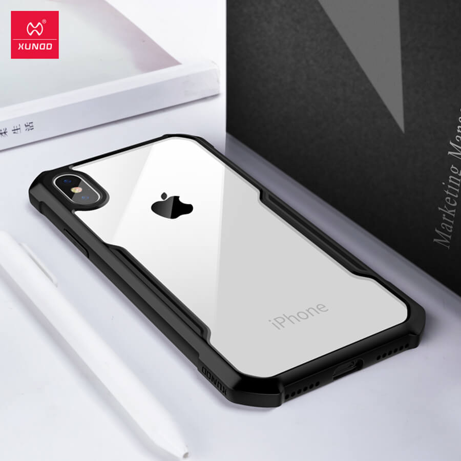 For Apple iPhone X / iPhone XS Shockproof TPU Bumper Clear Acrylic Mobile Phone Case For iPhone X Back Cover