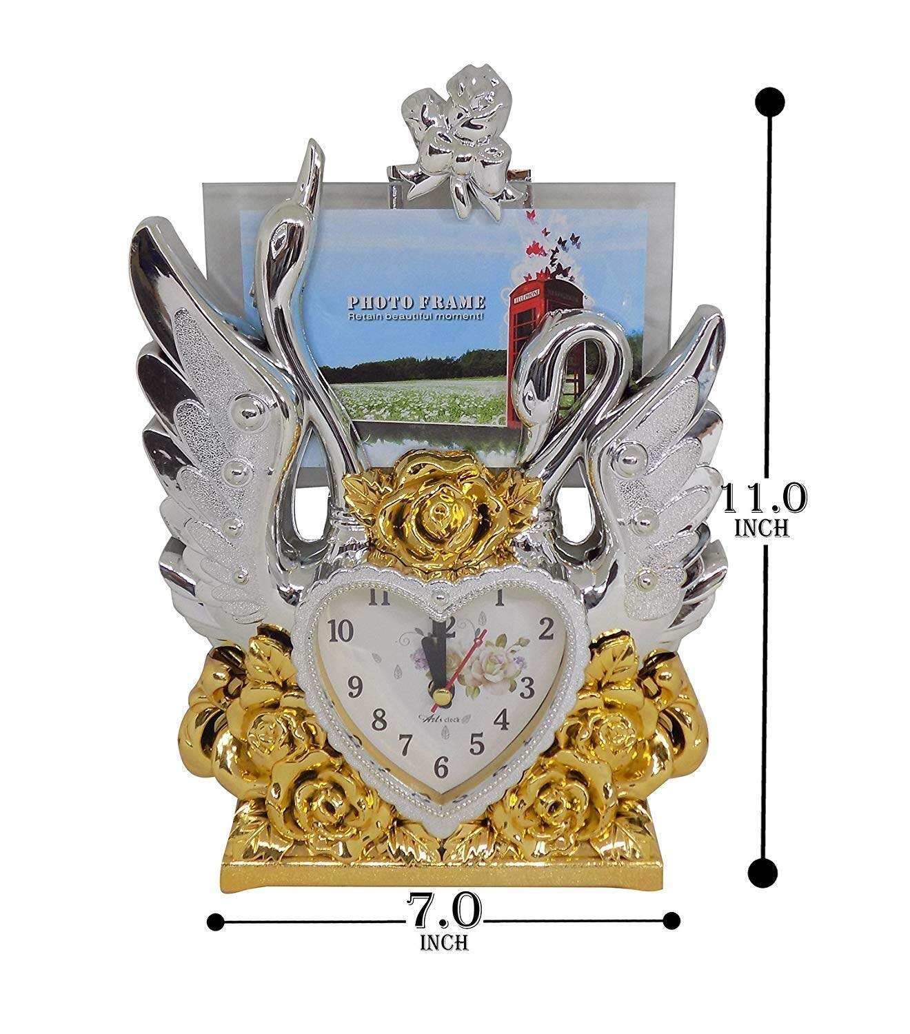 Are you moving into your new home? Are you trying to beautify your living room, bedroom, etc to give them great aesthetic appeal for this purpose AASA Home Decor Decorative Bed Side Table Decorative Clock with Small Photo Frame for Living Room Corners Bedside, Bedroom with plug Trendy New Design and Classy Touch Home Appliance Wedding Gifts Articles for Couple? It can be used in many places, such as home, office, cafe, Beautiful decorative items for drawing room, Living Area. AASA for Home Decor Beautiful for Office desk decoration, Study table decor, bedroom. A very charming and ethnic to embellish your home or office space. Simplicity and elegance both go hand in hand with this extremely designer and elegant looking piece of home decoration item. A Perfect Gift for house warming ceremony, house opening parties, or on other functions for relatives and friends. Can be placed at shelves near home entrance, in showcase in drawing room, or hall can also be placed as centerpieces for centre table, You Can Put It In Your Home, Desk And Another Place, can also be a nice gifting option on various occasions, such as new year, Diwali, new year celebration, for newly married couple, valentine, friendship's day, return gift for kitty party, house blessing's pooja ceremony. Big Antique Lucky Decorative Showpiece Table Decorative Clock with Small Photo Frame Office Home Decoration Business Gifts. Please give your FEEDBACK REVIEW & RATINGS