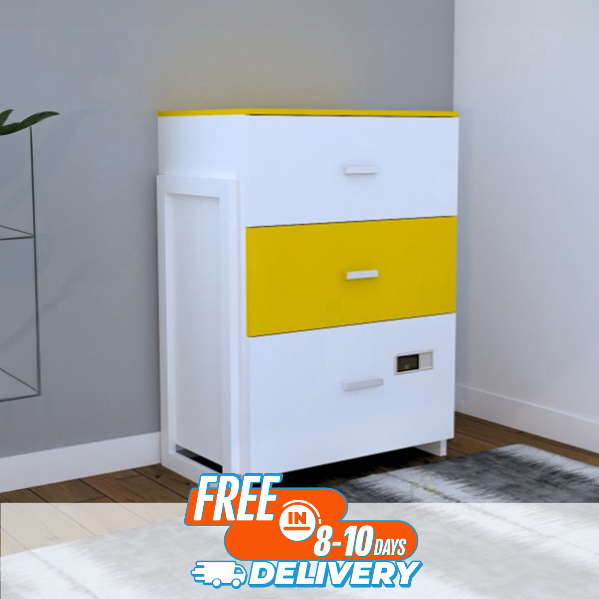 (Test Product) Furnisha Furnisha Smart Wardrobe/ 3 Drawer Clothing Large Storage (Finish Color - Yollow+White)