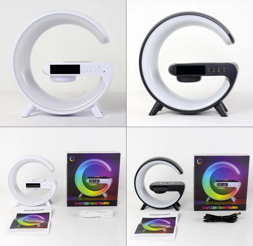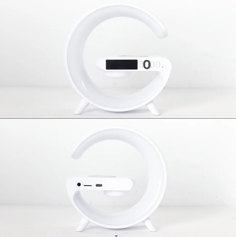 Introducing the G63 4-in-1 Colorful Smart Light with Speaker, a versatile addition to your home or office. This innovative device combines ambient lighting, Bluetooth speaker functionality, a vibrant color-changing feature, and a convenient alarm clock—all in one sleek design.
