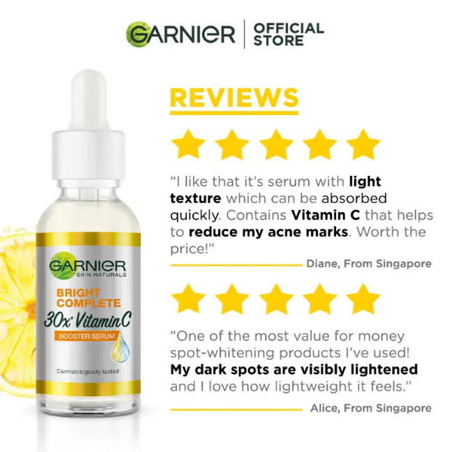 - Enriched with lemon extracts and 30 times the amount of Vitamin C of Garnier's Bright Complete face creams to combat dark spots