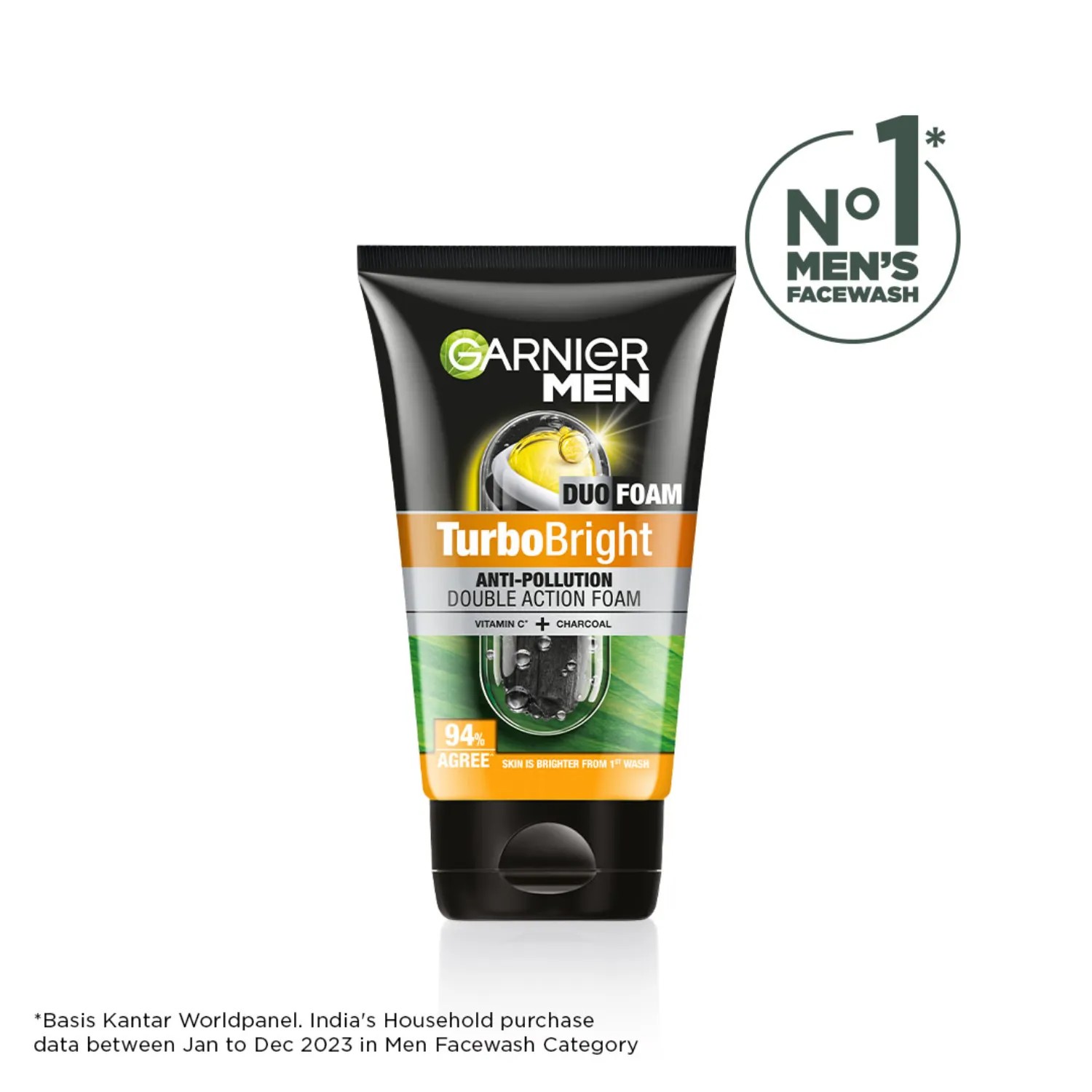 - Enjoy a brighter and more radiant complexion and fresh looking skin with the Garnier Men Turbo Bright Anti-Pollution Double Action Face Wash.