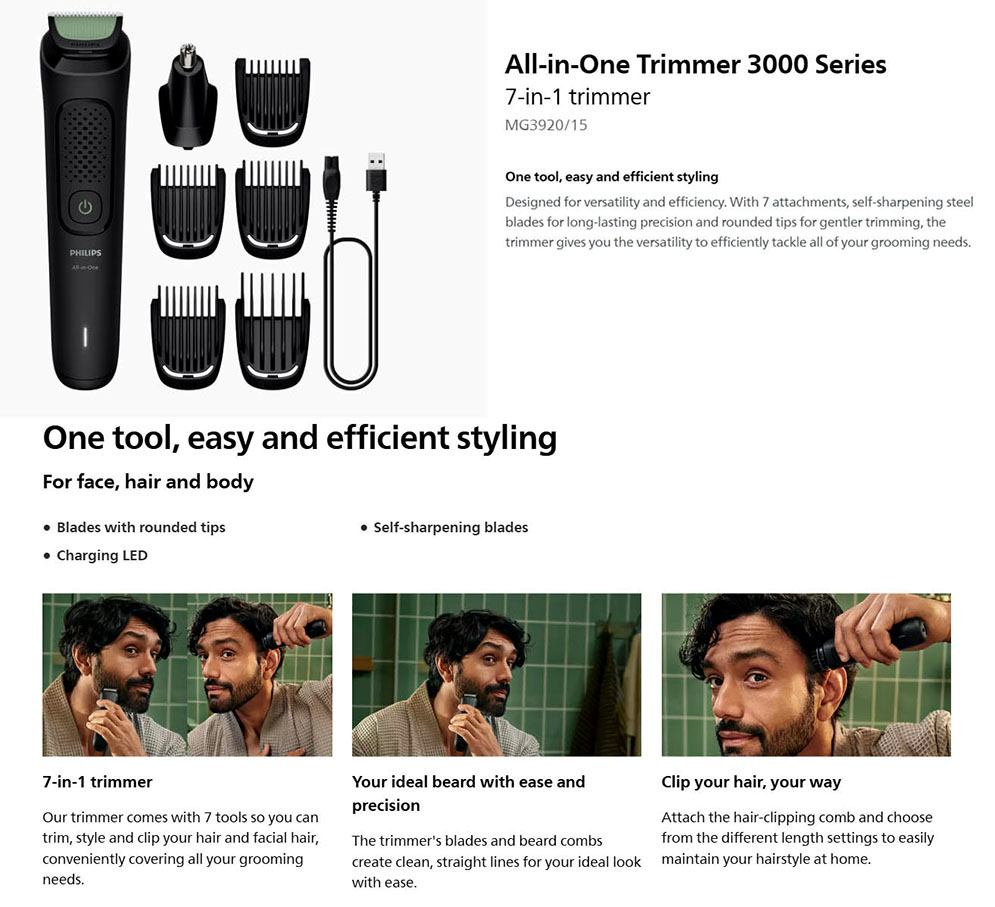 Philips MG3920/15 Multi-Grooming All-in-One Body Trimmer 3000 Series for Men