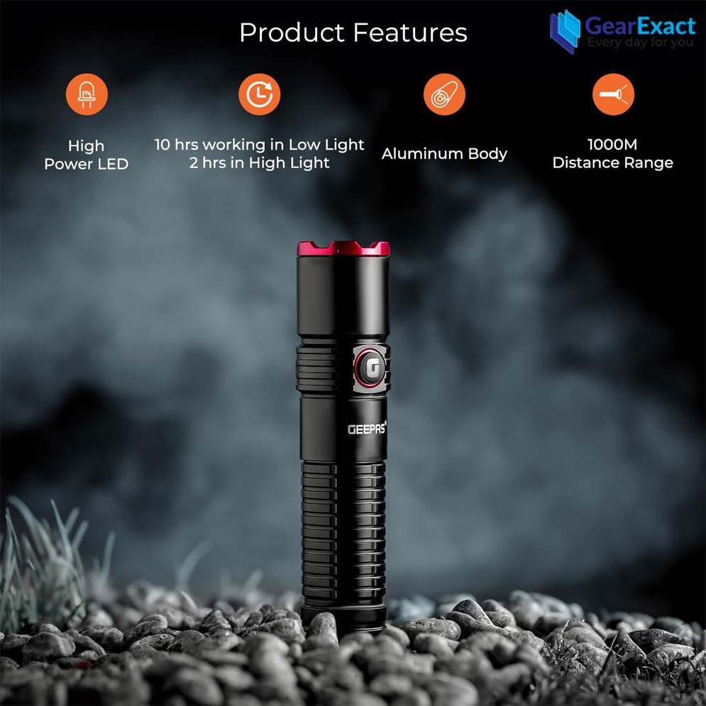 Geepas GFL51065 Rechargeable Zoomable LED Flashlight and Torch Light