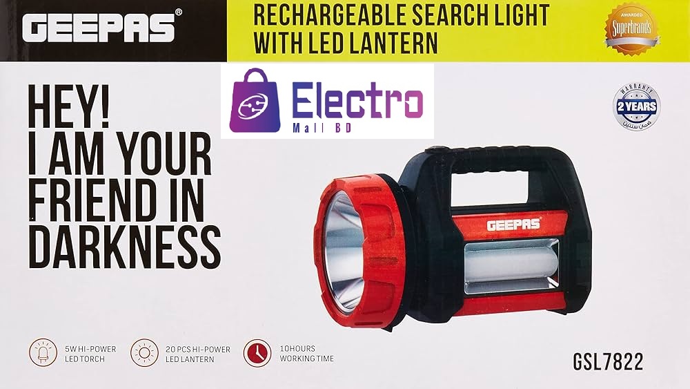 - 🔦 Geepas Rechargeable Search Light with LED Lantern – GSL7822