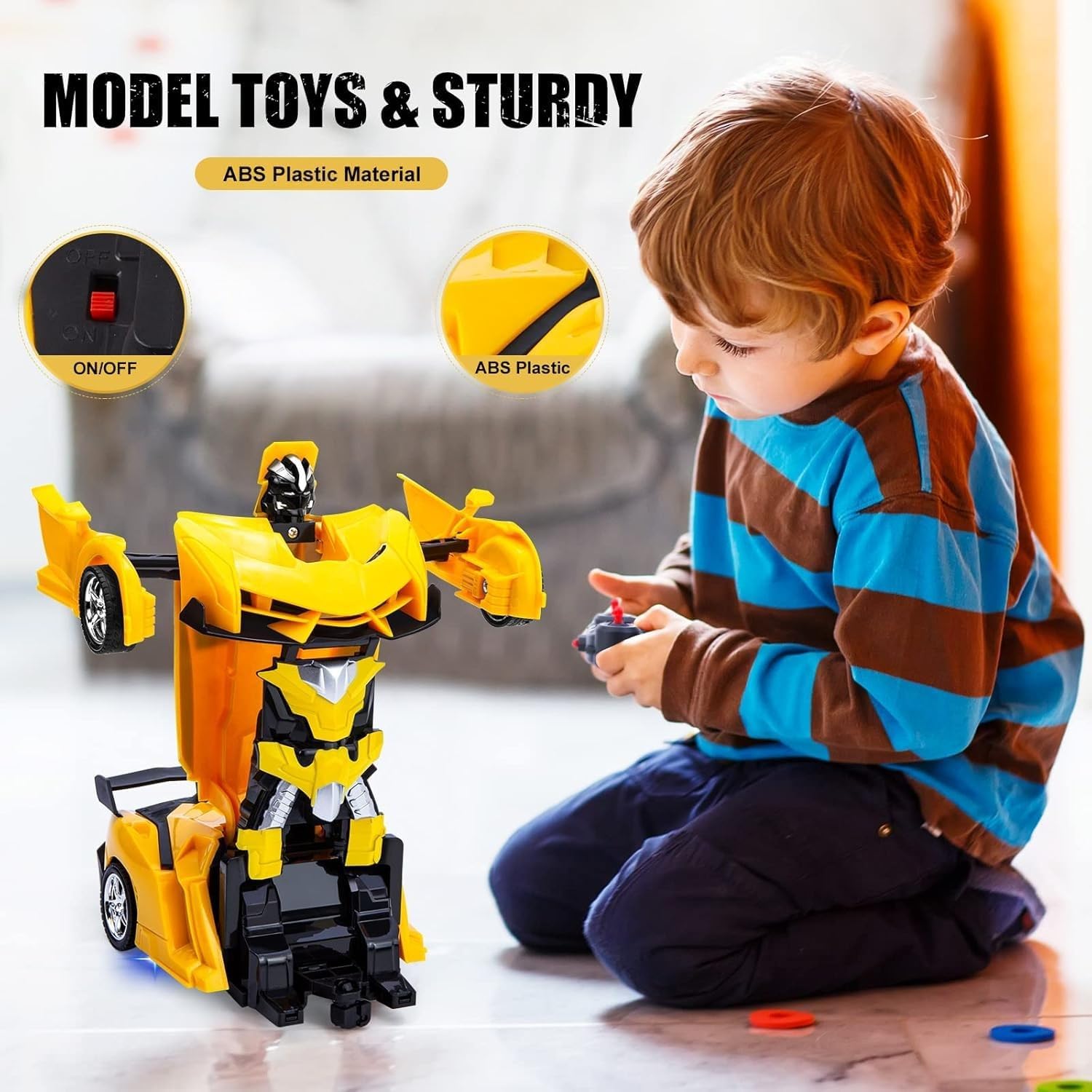 This rechargeable car robot has 2 in 1 design and is composed of high-quality ecologically friendly ABS plastic materials. It is sturdy and resistant to dropping. This deformable car not only operated as a car but also as a robot by pressing the deformable button on the remote controller. It is perfect for both indoor and outdoor play for children.