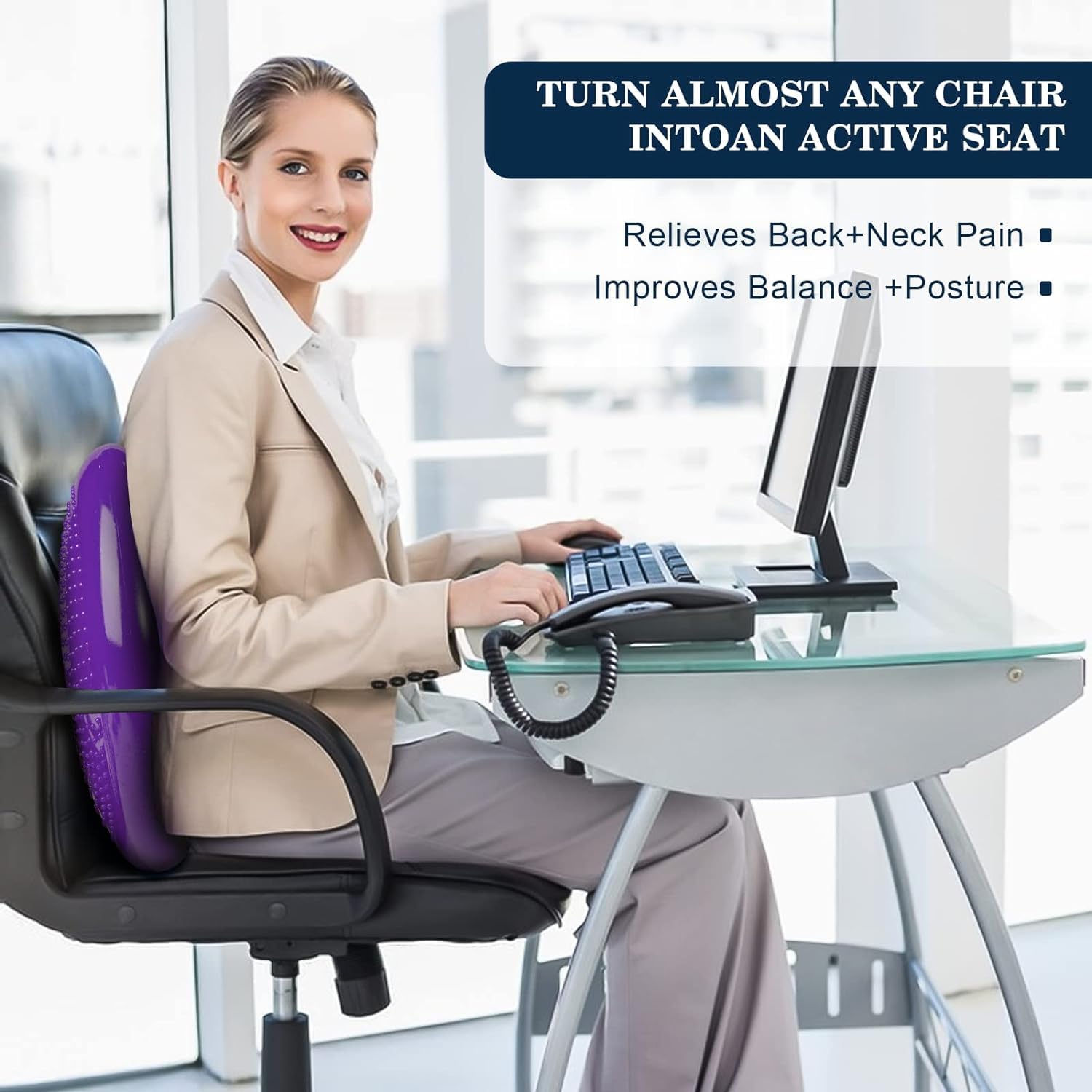 Turn any ordinary chair into an active seating solution. When placed on an office or classroom chair, the disc encourages proper spinal alignment, strengthens postural muscles, and reduces pressure on your lower back. Great for people who sit for long hours.