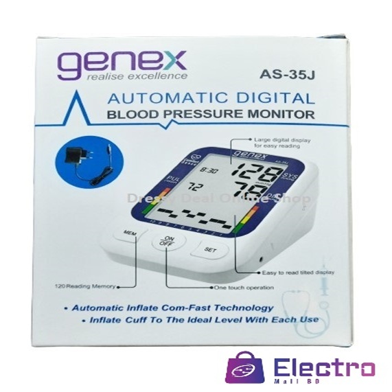 - Keep your heart health in check with the Genex Auto Digital Blood Pressure Monitor (Model: AS-35J) — engineered for precision, comfort, and convenience.
