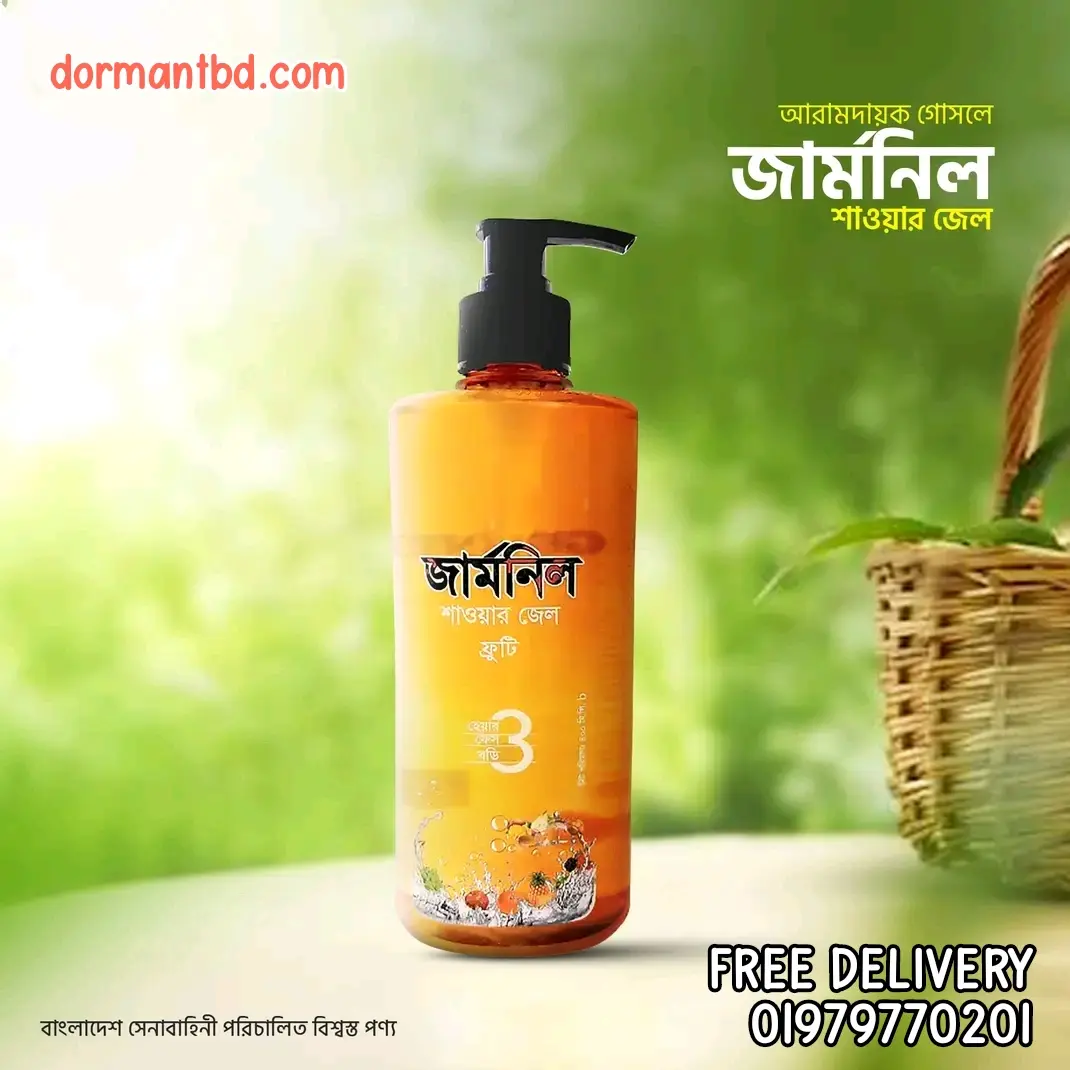 Germnil Fruity Shower Gel Pump (400 ml), produced by Bangladesh Machine Tools Factory (BMTF), delivers a refreshing and nourishing shower experience with a pleasant fruity fragrance.