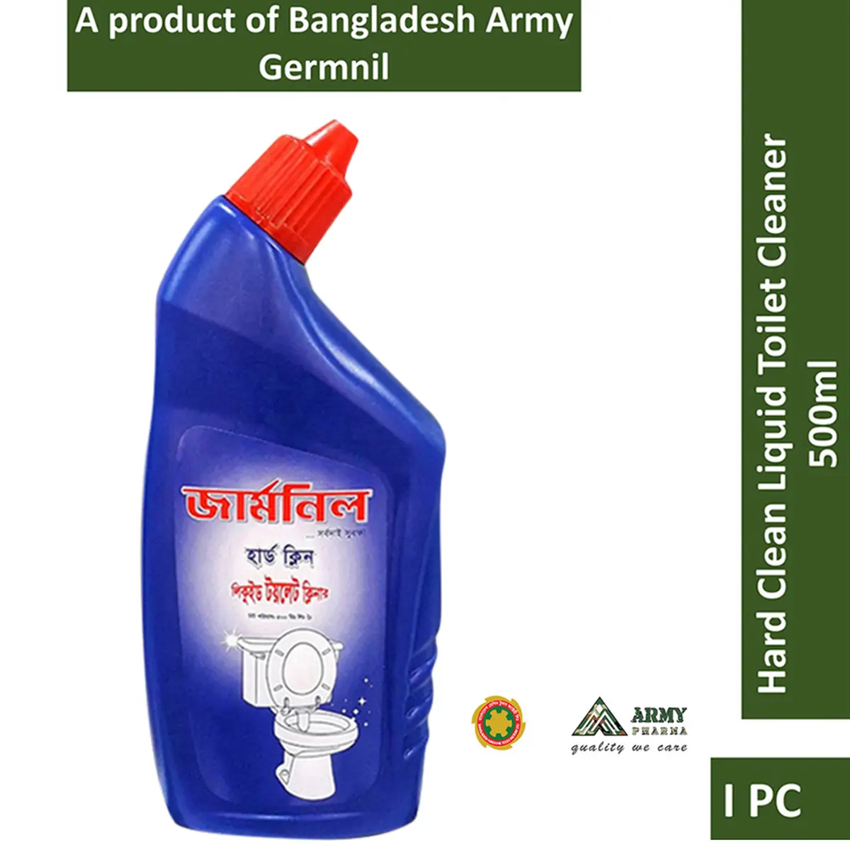 Germnil Hard Clean Liquid Toilet Cleaner (750 ml), manufactured by Bangladesh Machine Tools Factory (BMTF) under the supervision of the Bangladesh Army, is a powerful toilet cleaning solution that delivers deep cleaning and disinfection.