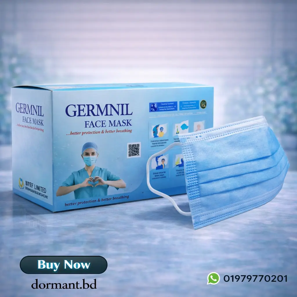 Germnil Surgical Face Mask (50 pcs box) is a high-quality disposable face mask manufactured by Bangladesh Machine Tools Factory (BMTF) under the supervision of the Bangladesh Army.