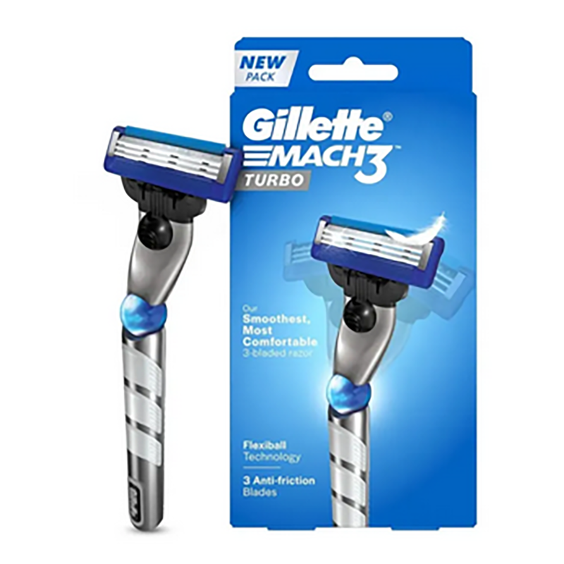 Gillette Mach 3 Turbo Shaving Razor for Men | Most Comfortable shave | Flexiball & Dynamic Pivot for Safe shave | Anti-Friction Blades & Lubricating Strip for smooth shave and sensitive skin
