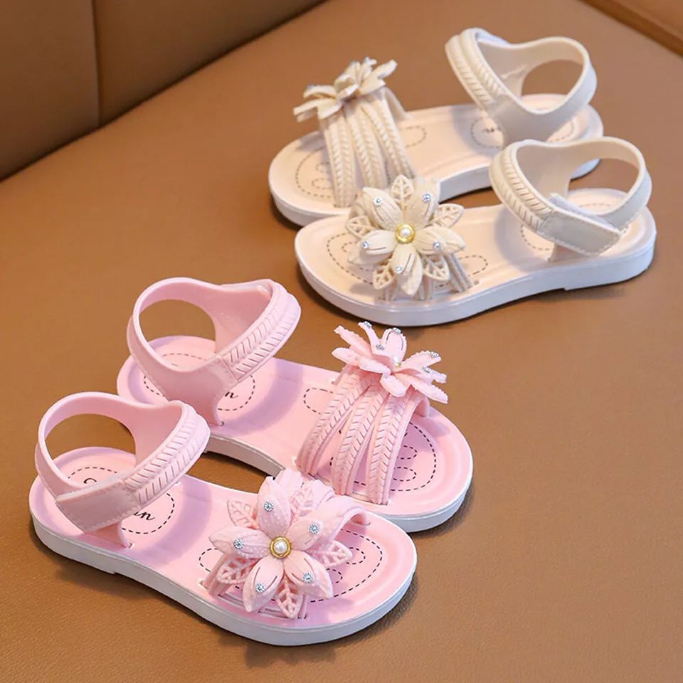 Girls Flowers Sandals Kids Sweet Princess Shoes for Party Wedding Kids Leather Sandals French Style Chic Summer Fashion 2024 New Casual Non-Slip