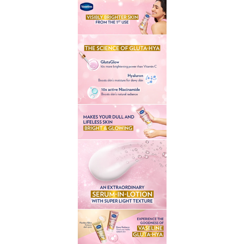 বাংলা পণ্যের বিবরণ: Vaseline Gluta-Hya Dewy Radiance Serum-in-Lotion 200ml