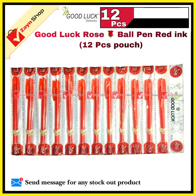 - Introducing the Good Luck DF Ball Pen, a set of 12 red ink ball pens with a 0.6mm thickness. These ball pens are perfect for everyday use, whether it’s for writing notes, signing documents or jotting down ideas. The pens come in a convenient pouch, making