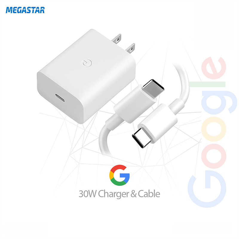 Google 30W Power Adapter/ Charger With Google Type C2C Cable Bundle White