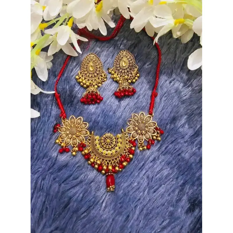 Gorgeous party wear antique Golden necklace and earring set for girls and woman. - Gold