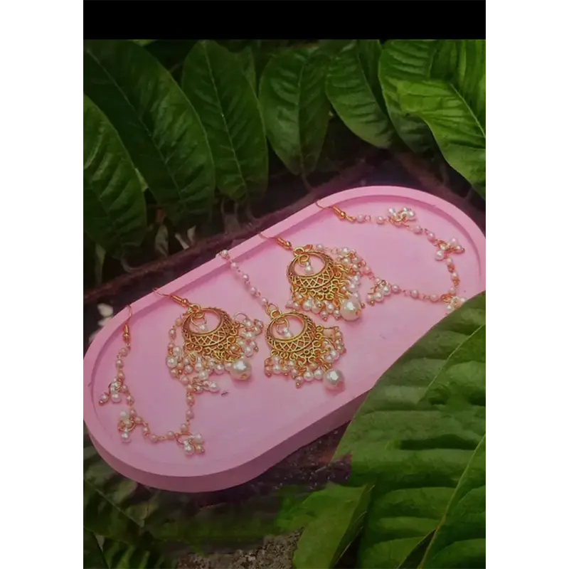 Gorgeous party wear antique golden necklace and earring set for girls and woman. - Gold