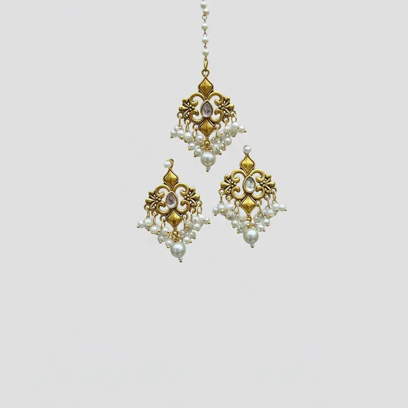 Gorgeous party wear antique golden necklace and earring set for girls and woman. - Gold