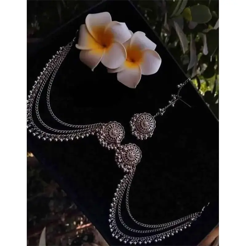 • This high quality of necklace  is made from the finest metal antique oxdidised this is added to stabilize the oxdidised so that it can hold its beautiful shape.these beautiful pendant and necklace to your jewellery collection and have peace of mind every time your wear them.women daily  jewellery  and gift for your important one.the pendant comes with the sterling silver chain long with a fancy dress to add a girlish or female.