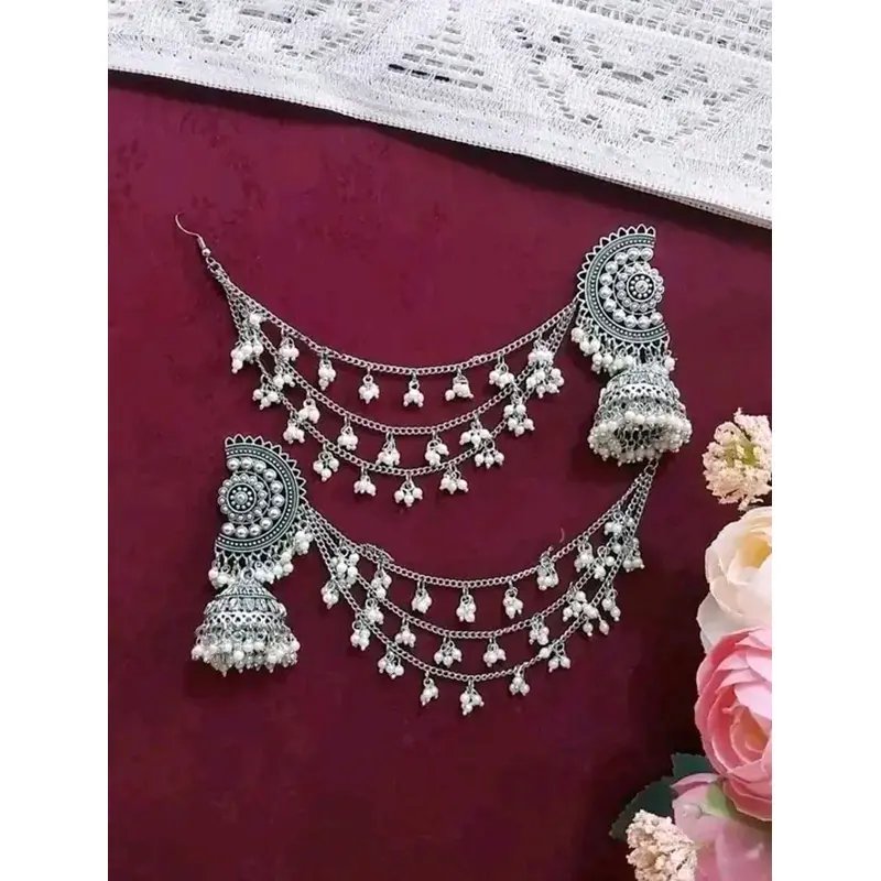 Gorgeous party wear antique silver necklace and earring set for girls and woman. - Silver