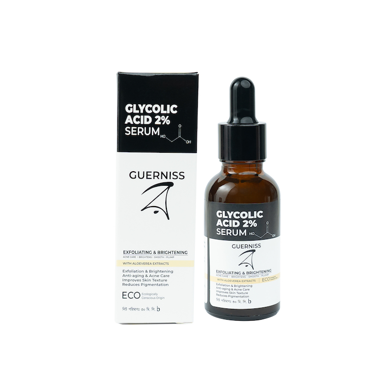- Guerniss Raw Glycolic Acid Serum is a gentle yet effective exfoliating treatment designed to improve skin texture, brighten dull complexion, and promote a smoother, more radiant appearance. This lightweight formula works on the skin’s surface to remove dead skin cells and encourage cell turnover for fresher, healthier-looking skin.